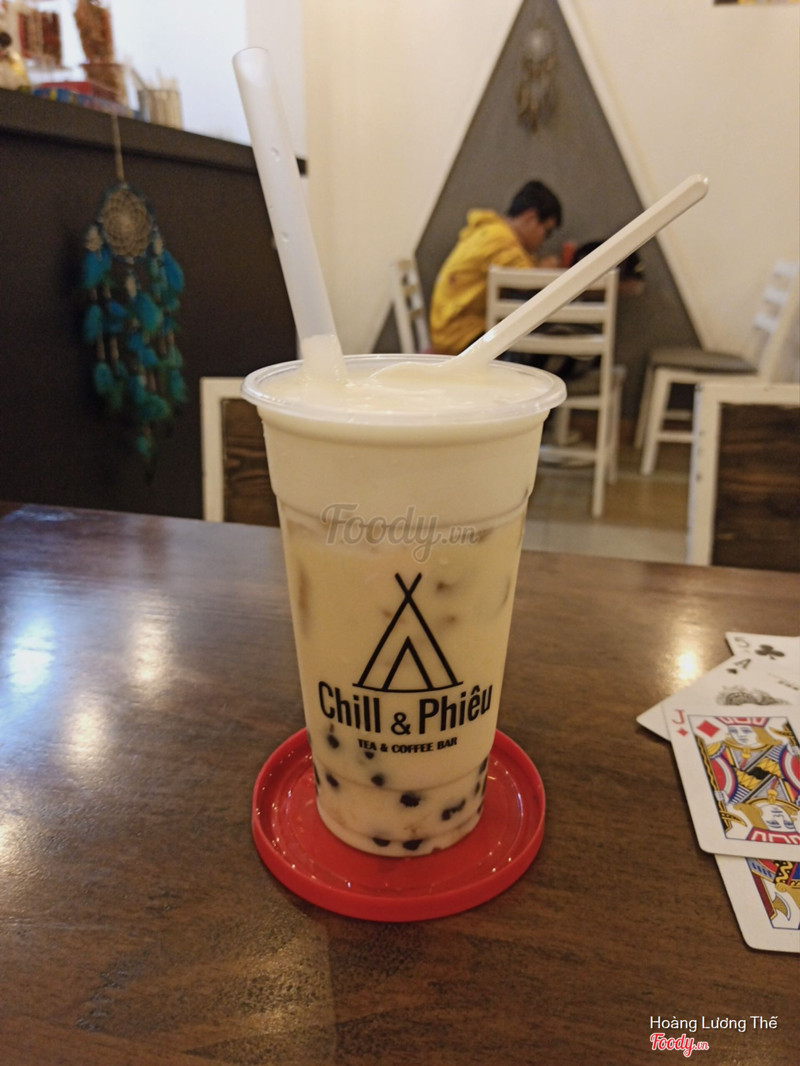 9.4Chill & Phiêu - Tea & Coffee BarĐi chợ ăn hàng chạy ngang qua thấy quán trà sữa mới mở nên ghé vô thử. Giá thấy cũng rẻ ghê. Không gian sạch sẽ, trang trí kiểu boho, có mấy dream catcher với thảm đẹp ds, với mấy cái ghế dài nhìn ưng nằm ra đánh 1 giấc :v Mình thì uống trà sữa lài, thêm trân châu đen. Trà sữa thơm mùi hoa lài, vị khá ok. Bữa nào có dịp sẽ thử mấy vị kia xem sao 👍 ...Xem thêm