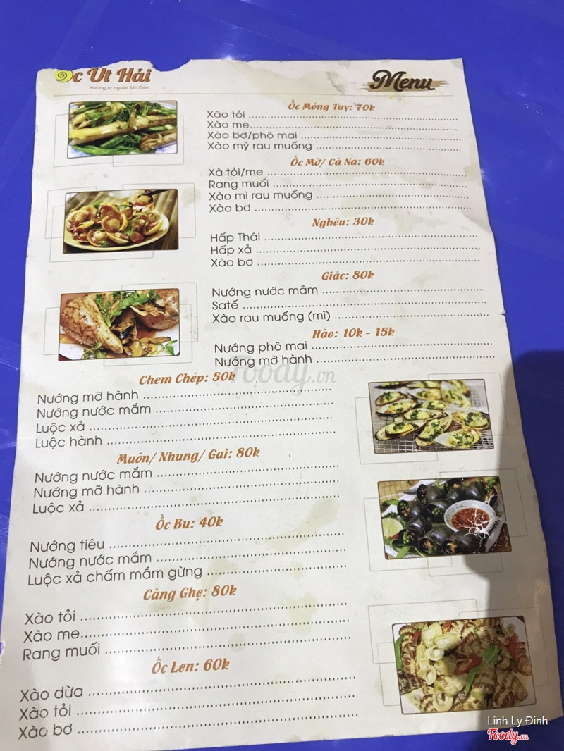 8.4Ốc Út HảiQuán ốc do chị chủ người Sài Gòn ra làm, quán đa dạng món mà không gian kiểu sạch đẹp nên ghé qua đã muốn ăn luôn rồi. Ở đây menu đa dạng lắm cái gì liên quan đến hải sản cx có: ngao, ốc, sò, ốc vặn, ốc tỏi, chem chép, càng nghẹ, ... Mình có gọi ăn thử mấy món sau review chi tiết chút: ✅ Càng ghẹ xào me ( 80k) một đĩa khá đầy, ghẹ khá đẫm thịt, sốt me siêu ngon kiểu ngọt ngọt hợp khẩu vị của mình và có thêm chút lạc ăn bùi lắm! ✅ Ốc móng tay xào rau muống (80k): đĩa siêu to luôn, khá nhiều con móng tay, ăn thịt ngọt như mực, ăn sần sật thấy ngon ngon, rau muống ăn kèm siêu thơm có thêm chút tỏi nữa best luôn! ✅Sò điệp phomai ( 60k): sò ăn vị hơi nhạt chưa ngấm sốt nhưng sốt thì thơm lắm rõ vị bơ vs phomai! ✅ Ốc ở đây cx ngon, thơm và con cx to lắm! Với giá như vậy thì chất lượng rất oke, mà ăn khá phù hợp! Giá : 40k-80k ...Xem thêm