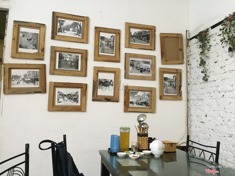 Bước vào một không gian tái hiện lại hời bao cấp, những năm 80 của thế kỷ truóc, những bức tranh về Hà Nội xưa, những tờ giấy báo cũ trang trí, bàn ghế, bát đũa, mọi thứ đều gợi lên sự hoài cổ. Đồ ăn được thử Mẹt gà lên mâm và Lẩu Thái. 1. Mẹt gà lên mâm: Một mẹt gồm 5 món bất kỳ, do nhà hàng chọn hoặc do khách oder. Mẹt của mình gồm chân gà chiên giòn sốt chua ngọt, xôi nhân lòng mềm, gà luộc truyền thống, gà nướng lá chanh và nộm gà. Chân gà sốt chua ngọt mình khá ứng về vị, chua ngọt mặn hài hoà và độ cay đậm đà, vừa gặm nhấm vừa xuýt xoa, hay phết. Thịt gà luộc mới gọi là chất, thịt săn, chắc, thậm chí thịt dai như kiểu thịt gà chọi, hơi khó ăn chút nhưng thịt ngọt, chuẩn gà ta. Nộm gà thì hơi nhạt, nên bổ dung thêm vị ngọt và mặn thì ngon hơn nhiều, vì thịt gà làm nộm cũng rất ngon. Gà nướng khá thơm, gia vị ngấm vào da gà, đậm đà, thịt cũng chắc như gà luộc vậy. Lạ nhất là món xôi nhân lòng mề. Xôi nén hình hoa, bên trên rắc vừng ăn khá thơm, bên trong nhân lòng mề gà đã xào qua, ăn khá là hay. Tuy nhiên mình thích xôi tơi hạt và khô thêm chút xíu vì xôi hơi nhão chút xíu thôi. 2. Lẩu Thái: cá nhân thấy nướcungf ổn, cần thêm vị chua cay rõ hơn nữa là tuyệt. Đồ nhúng lẩu có tôm, mgao, mực, đậu, bò cuộn nấm kim châm, rau mồng tơi và rau muống. Nồi lẩu khá đầy đặn, thích nhất là có mì gói hình con tôm như hồi bé hay ăn, tuyệt ...Xem thêm