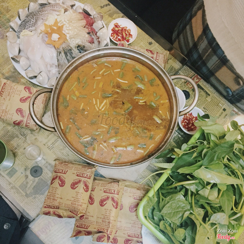 Vòng vòng Hà Nội lên Foody xem thì thấy quán này được mọi người review khá tốt nên cũng đi ăn cho biết, trời Hà Nội lạnh nên cả đám chỉ thích ăn lẩu thôi, order lẩu riêu cua sườn sụn bắp bò quán làm khá chất lượng và ngon nha, riêu cua nổi lên hết trên mặt, sườn sụn bắp bò khá là nhiều mà chỉ có 195k thôi, ngoài ra còn có rau, khoai môn, bắp, đồ ăn ngập nồi 3 đứa mình ăn không hết luôn, nước lèo quán làm ngọt thanh, ok lắm, Chỉ có 1 điều nhỏ là tuy không đông khách nhưng ngồi đợi món lên cũng hơi lâu, ...Xem thêm