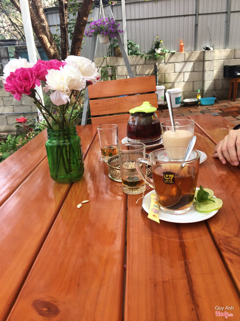 9.4Quán cưng gì đâu luôn áQuán cực kì nhiều cây xanh và hoa. Từ cổng vào một bên có hàng rào nhỏ xinh, một bên có hàng cây. Sau đó, đi xuống cầu thang khá cao nhưng hai bên cầu thang có nhiều hoa nên đẹp lắm. Vừa đi hết cầu thang là đập ngay vào mắt bộ bàn ghế màu hường bánh bèo đẹp quá trời quá đất. Trong quán bàn ghế mộc mạc nhưng xinh xắn. Có chỗ ngồi trong nhà và ngoài trời. Bữa mình đến quán mưa và gió khá lạnh nhưng vẫn thích ngồi ngoài trời. Ngồi uống trà, ăn bánh ngọt, ngắm cây cỏ và phóng tầm mắt ra xa xa là cảnh hồ Xuân Hương. Quán có cực kì nhiều các loại trà. Ngoài ra có bánh ngọt nữa. Mình vốn không thích bánh ngọt nhưng thử bánh mouse chanh dây của quán thấy khá ngon và không quá ngọt. À, bữa nay quán có bán cả đồ ăn sáng như bún riêu, tokbokki,... Bữa đó do không biết nên mình đã ăn sáng bên ngoài. Do đó chỉ thử trà và bánh ngọt của quán. Nói chung, cực thích không gian của quán. Quán gia đình nên toàn người nhà phục vụ thì phải. Ai cũng thân thiện hết. Chị chủ dễ thương lắm 😍 ...Xem thêm