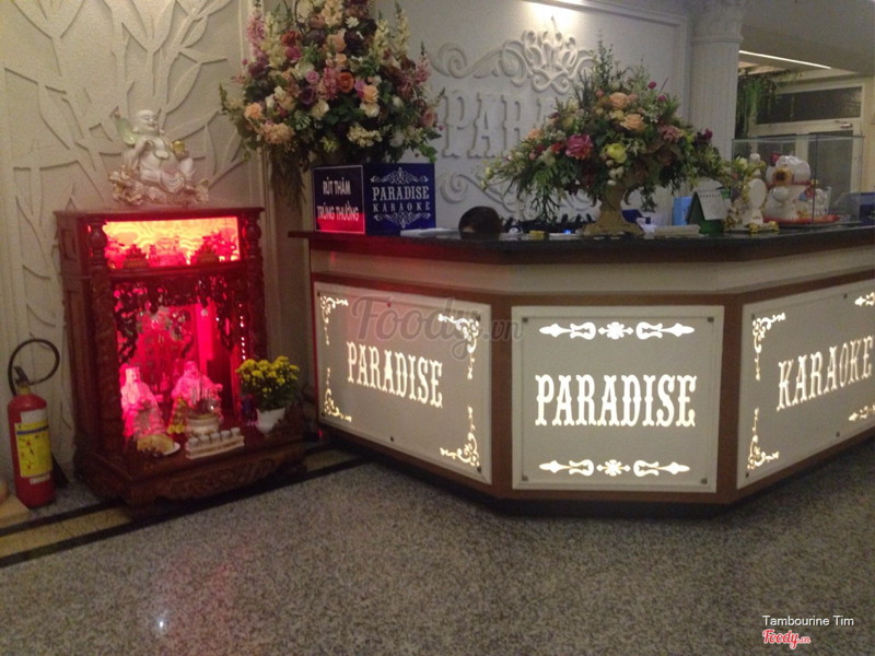 7.8Paradise 2 KaraokeHổm đi tăng 2 với công ty vô Paradise hát karaoke chắc cũng tầm 8h vô. Vì chờ cho nhân viên sắp xếp phòng tí nên đứng chụp hình, mình thì không phải lần đầu tiên vô đây nhưng vẫn rất thích decor ở Pẩdise, tạo cản giác sang trọng và đẳng cấp. Vô phòng 10 người khá rộng, nhân viên phục vụ trái cây và bia nhiệt tình. Hôm đó mình về sớm nên cũng không biết chi phí như nào, còn về chất lượng âm thanh thì quá tốt, tôn giọng, bài gì cũng có kể cả hit mới nhất. ...Xem thêm