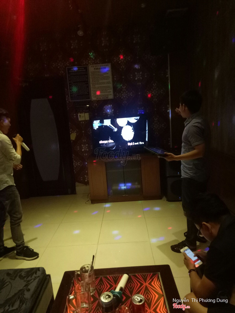 7.8Paradise 2 KaraokeGiờ mà bạn bè mình rủ đi karaoke thì 1 là đến chỗ này, 2 là lại karaoke số 1 gần nhà thôi. Karaoke số 1 thì giá rẻ với nhiều bài mới còn chỗ Paradise thì âm thanh ok hơn. Phòng karaoke hơi tối nên chụp lên không được đẹp chứ mình thấy trong này ghế êm, sạch sẽ, mát mẻ nữa. Nước uống đồ ăn đi kèm cũng tương xứng chất lượng. Có đi ca nếu đi được ban ngày thì giá sẽ ok hơn. Mình đi tầm tối, ca gần 2 tiếng với uống vài lon nước thì 4 đứa chia ra đứa cũng 50-60k. ...Xem thêm