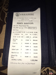 5.0Paradise 2 KaraokeỞ Cần Thơ này karaoke Paradise có thể cho là nơi giải trí sang trọng đẳng cấp nhất nhì. Mình thật sự rất thích đến đây. Nhưng tầm 1,2 năm tính đến nay cách phục vụ của nhân viên ở đây hoàn toàn không chút hài lòng, phải nói là quá tệ. Dường như nhân viên ở đây chỉ cần tiền bo chứ không hề cần khách hàng. Khi tính tiền nếu không có tiền bo thì thôi y như rằng thái độ của nhân viên coi khách hàng như rác rưỡi. Mong rằng có thể làm công tác tư tưởng lại cho tất cả nhân viên để không phải mất khách. ...Xem thêm