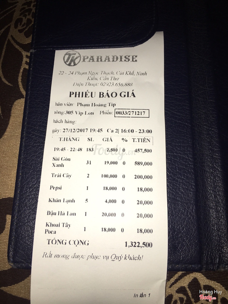 3.4CÁCH PHỤC VỤ MỘT SỐ NHÂN VIÊN QUÁ TỆ! #paradise2 #canthoMình có hay đến cùng bạn bè để giải trí ở đây. Hôm qua mình có đến, khi chuẩn bị đến quầy tiếp tân, thay vì quay sang niềm nở đón khách và hỏi han thì nhân viên tiếp tân ở đây đã có thái độ phục vụ đi ngược lại, 2 anh nhân viên đã không đón tiếp mình và bạn mình mà còn hỏi với hành động không thèm nhìn vào bọn mình nữa. Hai anh hỏi "Đi mấy người?", tụi mình cũng chẳng biết là hỏi ai. Khi đến cuối buổi, tụi mình đã hát ở phòng 401. Khi mình ra ngoài nhờ anh nhân viên vào để thanh toán (lúc đó là trước 20h tối), thay vì anh vào phòng kiểm tra thức ăn nước uống hay một số thứ khác để tiện hỏi là "Các bạn/anh/chị có thẻ V.I.P để giảm 50% không?" (như mọi lần), thì lần này anh vào thanh toán tiền một lượt và không xin thẻ giảm cũng như không hề giảm cho tụi mình. Em và tụi bạn ngừng hát, ra thanh toán tiền để đi về. Mình và tụi bạn bước khỏi phòng cũng 19h58', bởi vì anh nhân viên đã không giảm cho tụi mình. Khi ra đến, hai anh nhân viên (1 anh áo trắng và 1 anh áo xanh), đã nói vì chúng mình không đưa thẻ nên anh không giảm, với cả đã in bill rồi chủ sẽ la. Vâng, đó là trách nhiệm của tụi anh khi không hỏi thẻ của chúng mình như thường lệ mà tự động in bill, rồi còn trách tụi mình không đưa thẻ, nói tụi mình đã qua 20h mới ra khỏi phòng hát để thanh toán. Mình đã canh giờ vì tụi mình biết quy định ở đây sau 20h thì thẻ không có hiệu lực. Nhưng thay vì các anh giải thích hành động của các anh là không đúng, thì các anh đã trách ngược lại tụi em. Em có giải thích, do thường ngày khi em ra gọi các anh thanh toán, các anh có vào để hỏi về thẻ giảm, nhưng lần này thì không, cộng thêm việc chúng em đã kiểm tra đồng hồ khi ra đến quầy tính tiền rồi, sau đó các anh còn nói lần sau quay lại để đền dĩa trái cây. Chúng em cần giải quyết sự việc hôm nay chứ không phải lần khác để chuộc lỗi. Sau một hồi giải thích, thì các anh mới ậm ừ: "Vậy mấy anh coi như mỗi đứa hùn để bồi" nhưng nói với thái độ trách móc. Thêm việc máy móc hôm nay khi chọn bài hát, tự động xóa hết, nhưng tụi em có thể chấp nhận được, nhưng hôm nay, chúng em không đồng tình với thái độ phục vụ của nhân viên! Chúng em đã lựa chọn Paradise để vui chơi giải trí suốt khoảng thời gian dài, thay vì lựa chọn những nơi hát Karaoke khác, nhưng sau vụ việc hôm nay, chúng em đã có cái nhìn khác và sẽ suy nghĩ lại, CÓ NÊN CHỌN NƠI ĐÂY ĐỂ QUAY LẠI GIẢI TRÍ NỮA HAY KHÔNG!? Em xin cám ơn! ...Xem thêm