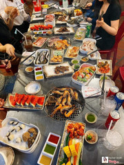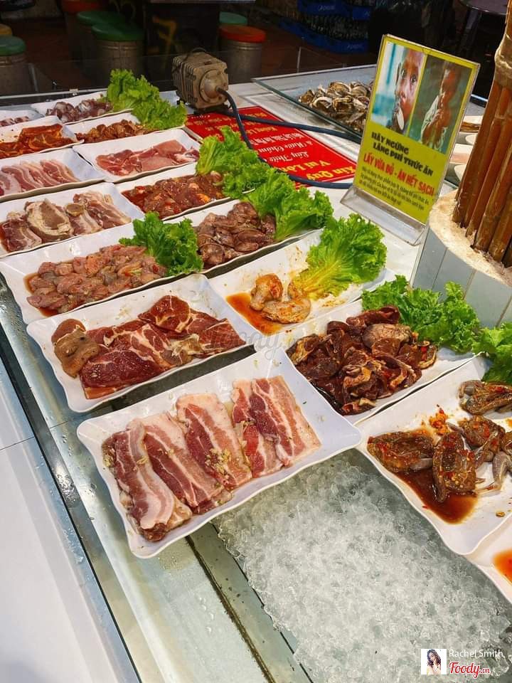 Quán nằm ở cách xa trung tâm, đường hơi vắng, phục vụ buffet với hai mức giá là 139k và 169k. Vé 169k khác vé 139k ỏ chỗ sẽ có thêm 1 phần bò, heo, mực (như ba cái dĩa mình chụp trên hình) và lẩu. Vì lần đầu đến quán ăn nên ham hố chọn vé 169k, chứ thật ra trên quầy đồ ăn có rất nhiều món nướng và tráng miệng rồi. Hai đứa chỉ ăn phần thịt nướng thôi là đã no cành hong. Ko ăn lẩu và tráng miệng nổi luôn. Về phần đồ nướng thì rất đa dạng từ heo, bò gà tôm thẻ ếch bồ câu nghêu mực cá kèo lươn đến nấm đùi gà, mướp, đậu bắp khoai lang. Tráng miệng thì có rau câu, bánh lọt, kem tươi,... Tuy nhiên quán ướp thịt chưa đậm đà và nước chấm kèm theo chỉ có ớt xanh, muối ớt và nước chấm kiểu hàn quốc thì phải. Phần mực trong vé 169k ướp mặn quá. Huhu Theo cảm nhận của mình thì món tươi ngon nhất là cá kèo. huhu Nhìn chung không gian mái rộng rãi, thoải mái, món ăn đa dạng, thích hợp cho những bữa tiệc gia đình ấm cúng. ...Xem thêm