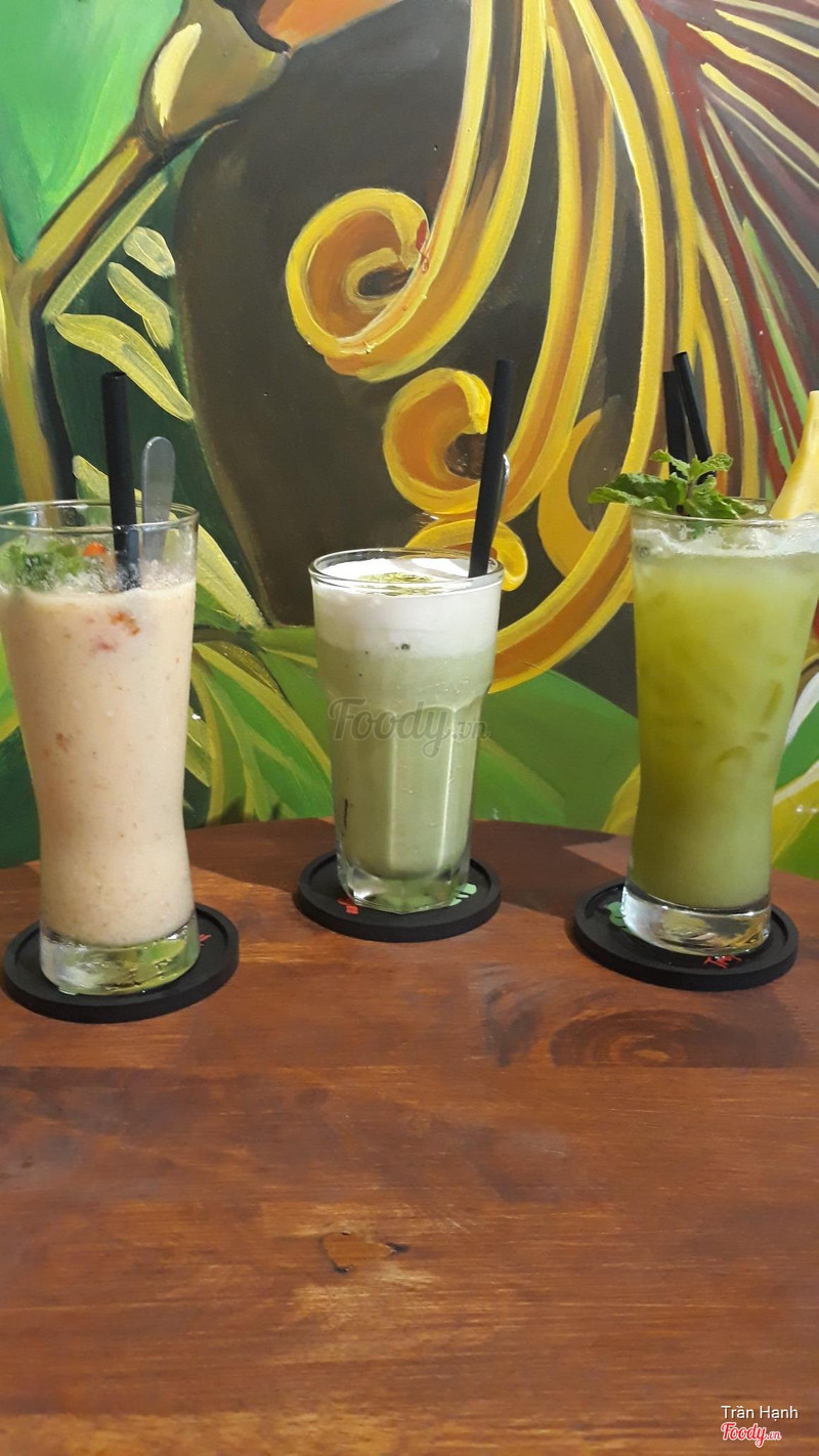 8.2Không gian xanhQuán nằm ở vị trí đẹp,có hàng phượng rũ xuống rất lãng mạn .Bên trong quán kiến trúc cũng khá lạ mắt,vào nhìn màu xanh thấy mát rượi ^^ Không có lầu nhưng không gian trải dài,rộng sâu vào trong(chỗ ngồi dành cho hội nhóm muốn chơi trò chơi đông vui).Còn bên ngoài có vẻ lịch sự thích hợp với bàn bạc công việc,học bài vv. Có cái máy ảnh cổ trên quầy làm đạo cụ chụp ảnh được hehe:)) Về thức uống,mình nhờ bạn nhân viên tư vấn món nào ngon và được tư vấn gọi 4 món khá là đặc trưng của quán: wind juice,orrange coconut ,coconut mango smoothies và peach strawberry smoothies.Mình hảo ngọt thích món Coconut Mango Smoothies nhất ,rõ vị dừa béo béo cộng thêm vị ngọt của xoài tươi,kết hợp hoà quyện rất ngon nha.Tuy nhiên nên bảo nhân viên xay ít đá bơt lạnh sẽ ngon hơn.Còn nếu ai thích uống chua nên gọi món Wind Juice, ép từ quả Cóc ,rất lạ luôn! Chưa thấy ở quán khác mà mình từng ghé. Giá cả ok,từ 20-55k ,phù hợp với mọi túi tiền^^ Nhân viên cũng thân thiện,nhiệt tình và biết tư vấn.Giữ xe miễn phí. ...Xem thêm