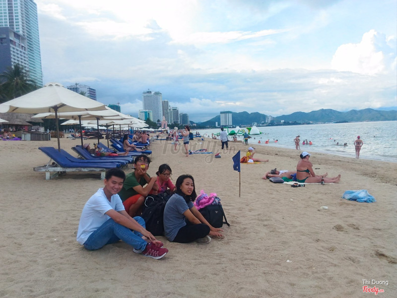 Đến Nha Trang là phải tắm biển !! Ui mới vào thành phố mình bị choáng vì quá nhiều khách du lịch luôn, và họ thoải mái đi lại trên những bãi biển trải dài dọc đường biển. Tụi mình chạy xe máy thẳng đến Bãi Dài, khá xa. Tại đây tụi mình gửi xe vào bãi rồi xuống biển tắm. Ngay ngày tụi mình đi biển động nên nhìn không có trong xanh cho lắm, trời cũng nắng mà ui ui chứ không tới nỗi nắng banh đầu. Bãi cát thì trắng mịn, hơi lày. Biển nhìn vậy chứ cũng sâu nha, mình ra một xíu là ngang cổ nên hơi sợ sợ vì mình không biết bơi, nên chỉ tắm gần bờ. Thích ngồi cho sóng dập vào lưng thôi. Nước biển lúc ấy cũng trong nhưng không có xanh lắm. Có một chỗ thì nước lạnh, có một chỗ mình lội ra xíu nữa thì nước âm ấm khá thoải mái. Cảm thấy thư giản tuyệt đối, rất là thích biển. Trên biển cũng có dịch vụ cho thuê bạt, dù, ghế, nước uống hay các món ăn vặt: tàu hũ nóng, bánh đa chấm mắm ruốc, đồ hải sản... mà mình thấy món ăn ở đây không đặc sắc cho lắm với không hợp khẩu vị của mình. ...Xem thêm