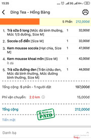 4.0Phục vụ quá tệSáng nay mình od 3 ly nước sang Vincom LTT , bạn nhân viên bên Dingtea nói là tiền ship 15 k và 15 phút sau sẽ có trân châu ,va sẽ gọi lại báo tổng số tiền . Nhưng sau đó bên mình chỉ nhận được cuộc gọi xuống lấy trà sữa không hề có cuộc điện gọi lại báo tổng số tiền. Tiền ship là 25 k khi mình nhận không còn la 15 k nữa, khi mình gọi lại bên chi nhánh Hồng Bàng chỉ nhận được câu tết lên giá tiền ship , chấm hết. Cách nói chuyện và phục vụ không thể chấp nhận đươc , quá tệ. ...Xem thêm