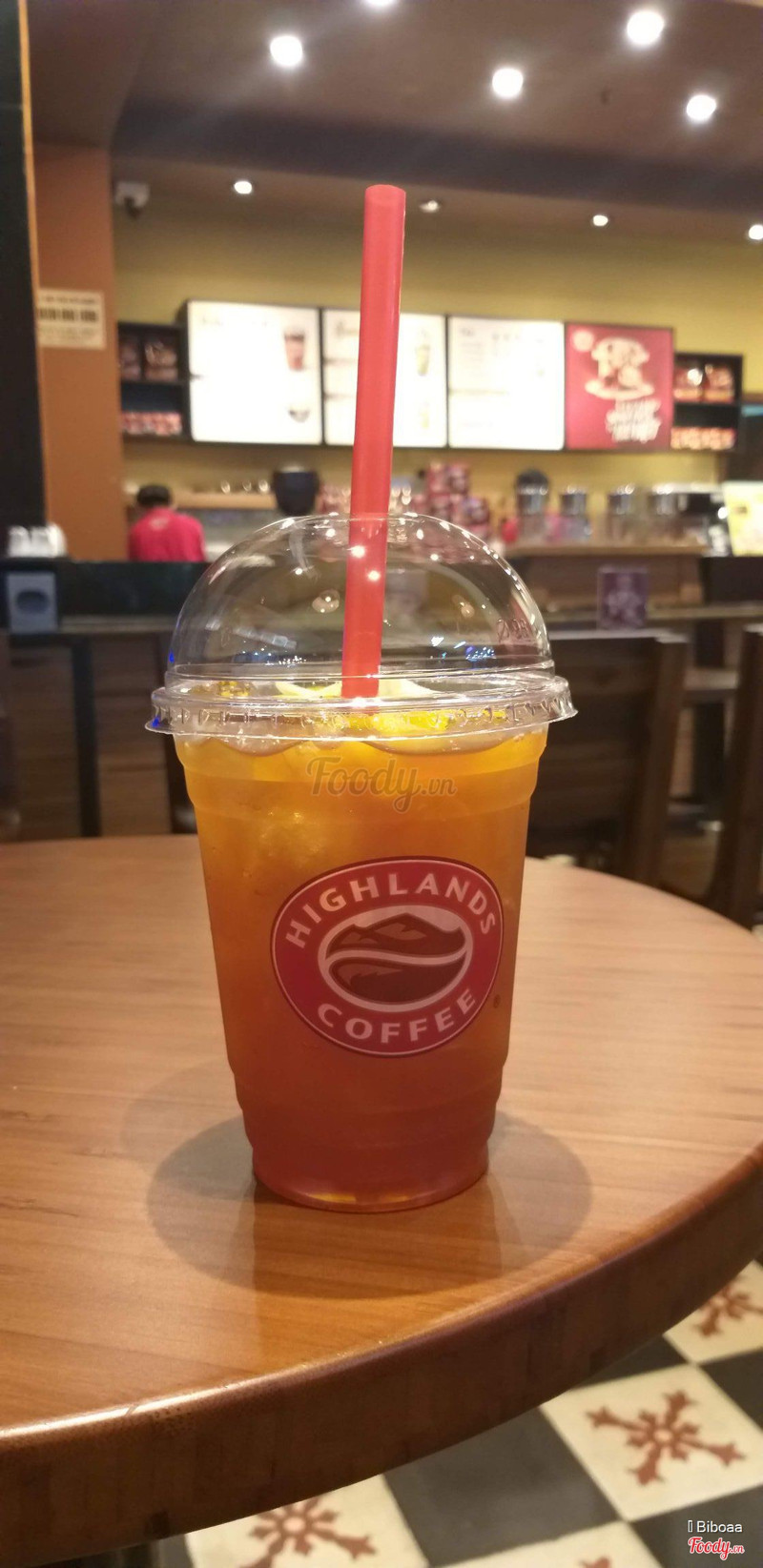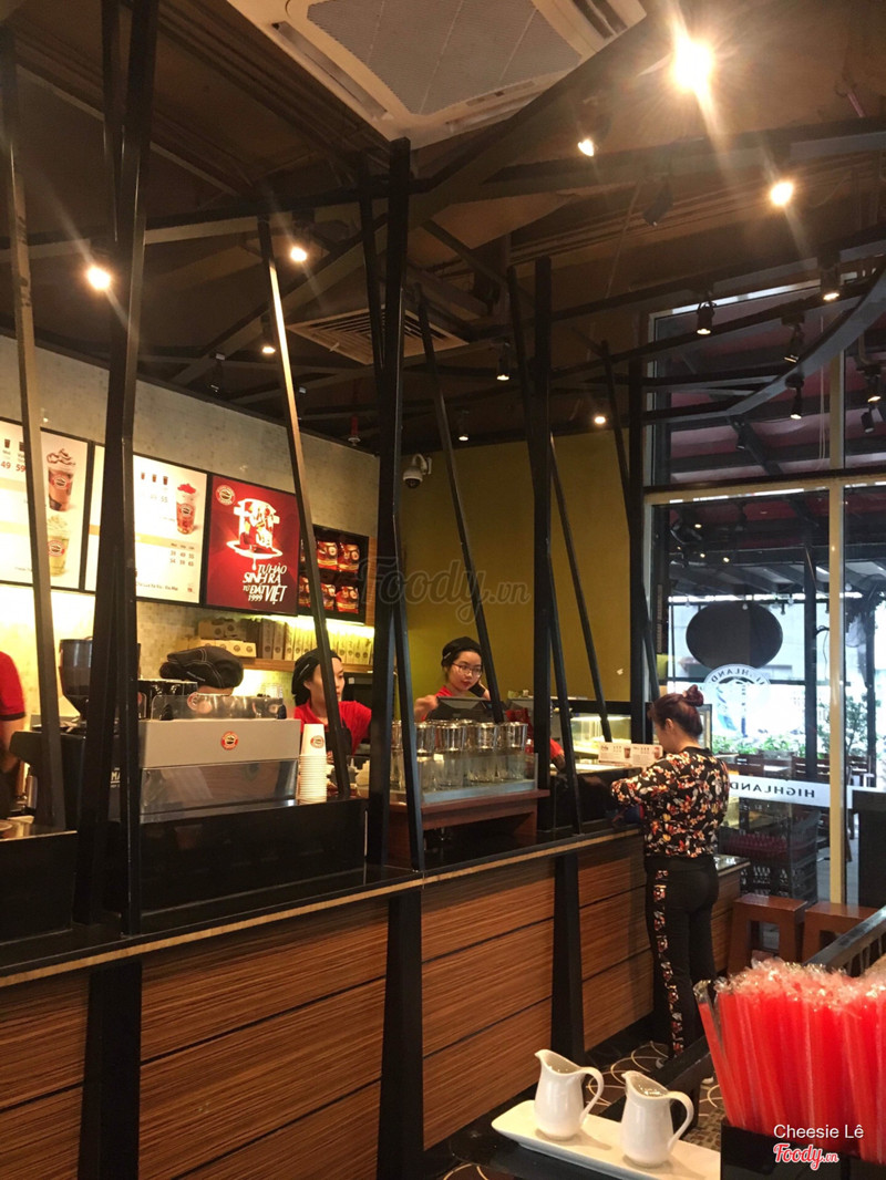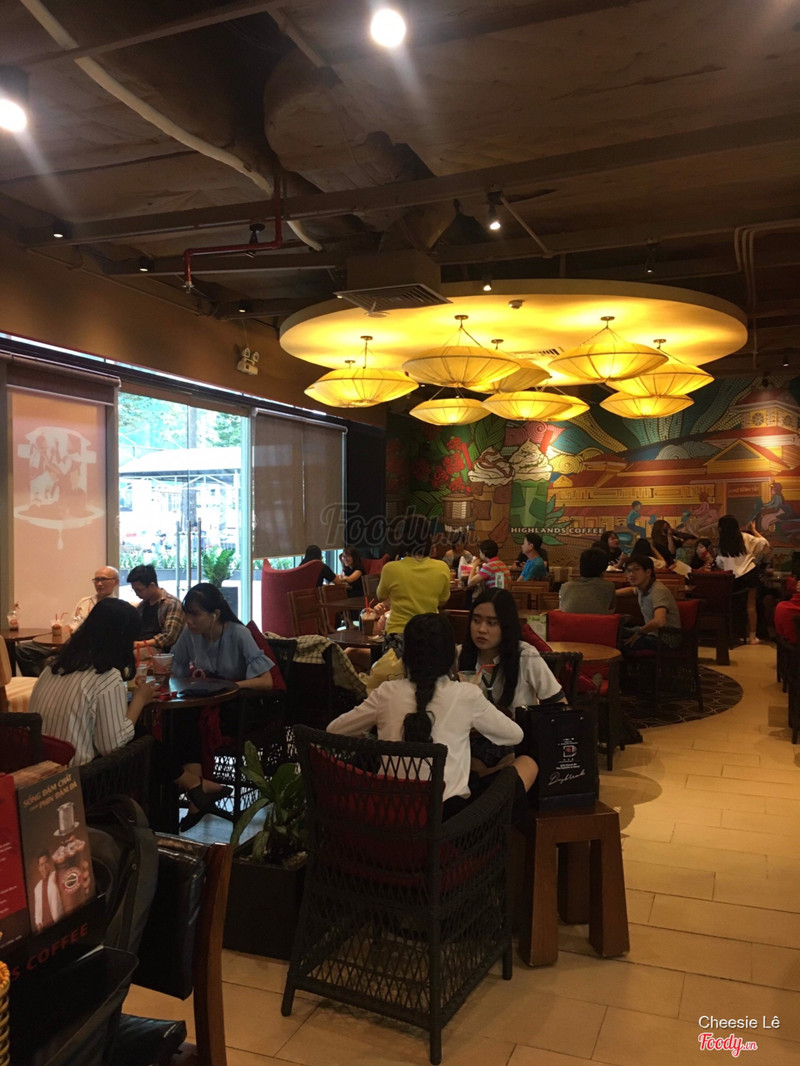 7.6Khuyến mãi - đượcHighland Coffee lầu 4 Parson Hùng Vương - góc rộng - vị trí thuận lợi - view đẹp - cửa sổ nhìn ra đường Hồng Bàng và trường ĐH Y Dược (không biết như vậy có gọi là đẹp không, nhưng những khu vực xung quanh không có cửa sổ). Quán đông đúc, nhân viên phục vụ nhanh nhẹn, tận tình. Combo khuyến mãi 1 cà phê phin + 1 trà giá 55 ngàn. Mình chọn món trà sen vàng có váng kem. Kinh nghiệm có lẽ là nên uống cà phê trước, trà sen vàng sau cho cà phê bớt đắng. Nói sao ta. Cà phê sữa đá hơi đắng. Trà sen vàng thì cũng được, hơi ngọt (có lẽ do cà phê), hạt sen thì hơi cứng, có thể là loại hạt sen sấy khô. Váng kem tương đối đặc, không béo, hơi ngọt (so với váng sữa bên Tocotoco). Nói chung cũng được. Giá tương đối rẻ. Các bạn nhớ đăng ký thẻ thành viên tại Food court để được nhận phiếu giảm giá dịp sinh nhật nhé. ...Xem thêm