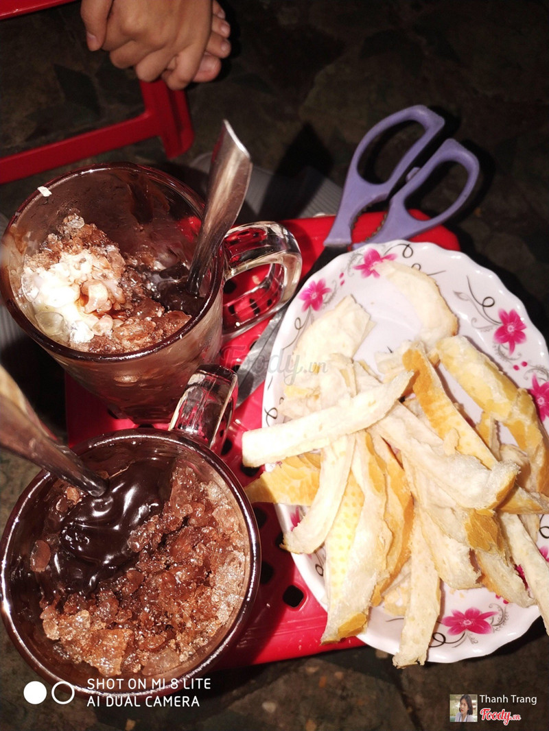 7.0ChấtChạy vô tới cuối hẻm số 14 nhìn bên tay phải là thấy liền. Không gian không rộng lắm, ngồi ghế xúp vỉa hè, để xe ngay phía trước chỗ bán luôn. Cô bán dễ thương, làm nước nhanh. Đá me hay cacao đá gì cũng 15k, cacao đá thì đã có tính luôn ổ bánh mì không rồi. Ổ bánh mì được để nguyên trong 1 cái dĩa kèm theo cây kéo bự, nói chung là tự cắt ổ bánh mì ra theo ý thích. Còn cacao đá thì có cái sốt sền sệt, đắng đắng ngòn ngọt, quết lên bánh mì cũng ngon lắm. Đá me uống hơi gắt, đá tan ra thì ổn, uống ngon, đậu phộng nhiều. ...Xem thêm