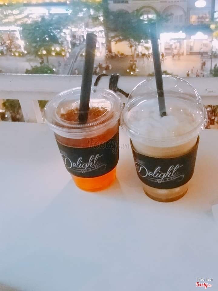 Delight nằm trong chung cư Nguyễn Huệ, tầng cao nên trước khi uống bạn có thể tập thể dục đốt carlo trước :))) Về không gian : không quá rộng nhưng cách trang trí đơn giản, thuận mắt. Bàn ghế sắp xếp khá tốt. Có ban công nên bạn nào thích ngắm phố đi bộ hay hưởng gió trời thì có thể ngồi bên ngoài. Mình đi tầm 1h30-2h thì bên trong khá đông khách. Hôm mình đi có chương trình giảm 50.000 cho tổng bill cho hssv. mình và bạn đã gọi 2 món : trà sữa truyền thống(65k) và cacao machiato(85k) >> tổng 150k - 50k 100k(giá khá chát) - Trà sữa truyền thống : ngọt, bạn nào không thích ngọt quá thì nên dặn quán trước. Theo mình trà sữa ở đâu ngọt nhưng không quá gắt, khá ổn nhưng uống nhiều sẽ ngán. Có trân châu trắng, cả trân châu cũng ngọt nốt. Uống cũng khá thích nhưng nên giảm độ ngọt. món này 8/10. - Cacao machiato : vị cacao đậm, đúng chất cacao, phù hợp cho ai mê cacao. lớp machiato phía trên có vẻ khá nhạt nên không cảm thấy vị. món này 8/10 Điểm trừ là giá khá cao. Tiền đó có thể đến các quán khác uống. Vài tháng uống một lần thì ổn hơn. ...Xem thêm