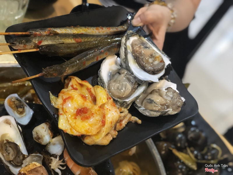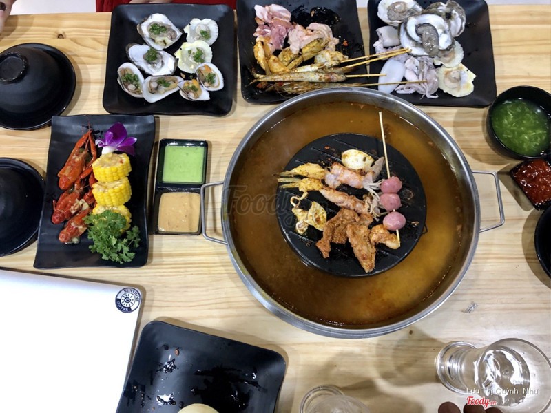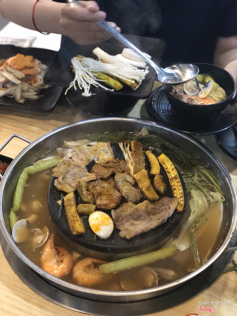 8.2Lẩu nướng 2 in 1 lạ lạ 🍲🥩Quán này nửa tháng trước mình có nghe tới mà bận lễ lộc này nọ nên đầu tuần này mới ghé ăn thử được . Không gian thoáng rộng , giữ xe trước quán mà có quầy buffet lấy đồ nướng lẩu thoải mái luôn nè . 🤤 Ưng nhất nồi lẩu nướng than hồng nhưng lạ , không hề bám mùi thức ăn hay khói các kiểu , nào ngán nướng cứ quăng xuống nước lẩu , nước vị vừa ăn (kèm bún hay mì đều hợp hết) . Hải sản nướng có hàu ~ vẹm ~ cá kèo ~ cá đuối ~ cá hồng ~ tôm ~ bạch tuộc ~ mực ... còn thịt thì có bò ~ heo đủ nha . Nước được free , tráng miệng với chè free nốt . 😘 Đặc biệt giá chỉ 215k/ người (không thuế hay phụ phí gì hết đó) , đi nhóm 4 người còn được tặng free chai rượu Soju luôn . Mở cửa từ 4 giờ rưỡi chiều đến tối , cách Satra Phạm Hùng xíu xiu nè . ☺️ ...Xem thêm