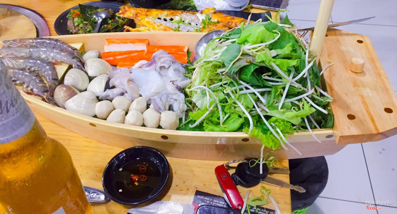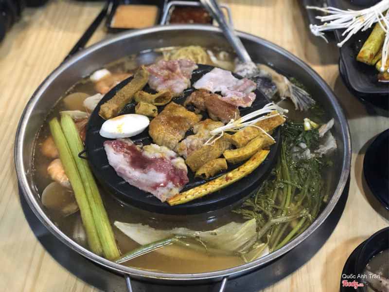 8.0Buffet lẩu nướng 2 trong 1Mô hình này lạ do mình mới thấy lần đầu, cũng thích ăn nướng mà thường sợ ám mùi nhưng chỗ này hạn chế hoàn toàn việc đó. Không gian cũng thoáng, phù hợp ăn uống gia đình hay lai rai cùng anh em chiến hữu. Giá 1 vé 215k không thêm thuế gì còn được uống nước ngọt, nước suối free. Đi nhóm 4 khách tặng chai rượu Soju luôn. Đồ ăn kèm đa dạng từ thịt, hàu, cá đuối, cá kèo, cá hồng, tôm, mực, bạch tuộc... thêm 1 lựa chọn cho tín đồ mê lẩu nướng. Mở cửa từ 4:30 chiều đến tối. Cùng phía với Satra Phạm Hùng, đi lên hướng Nguyễn Văn Linh xíu là thấy quán. ...Xem thêm