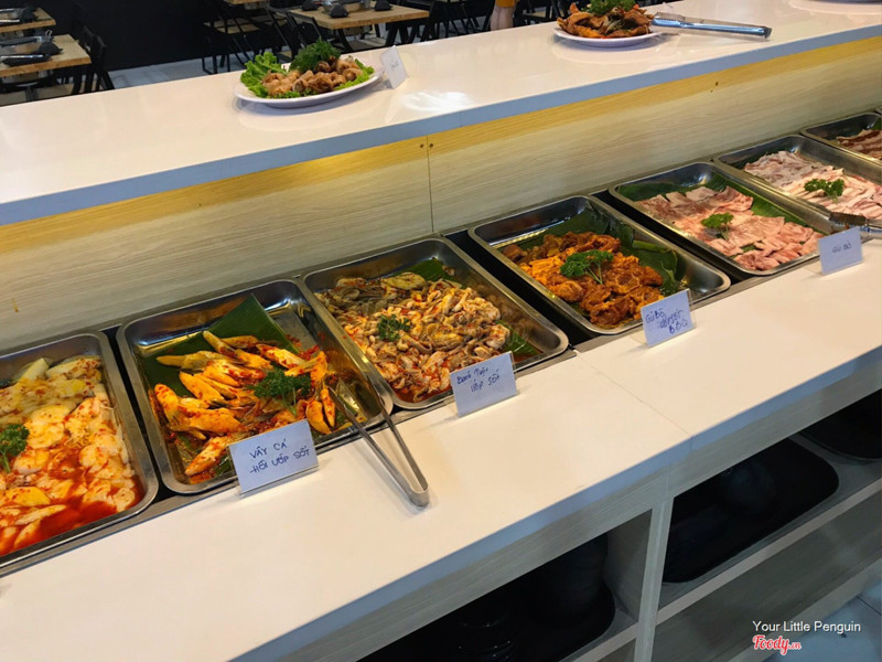 7.2Hơi không như kỳ vọngQuán mở chưa lâu, mình với người yêu đến nơi tầm 7g nhưng đồ ăn trên line đã gần hết và mình cảm giác chỉ nhìn đầu người để refill. Lúc mới đến nơi mình còn hơi bất ngờ vì đồ ăn trên line nhìn khá lộn xộn và mình không thấy đồ gắp ở đâu thì hỏi nhân viên và đc trả lời là lấy đũa sạch của mình gắp cũng đc, hic. Tuy nhiên với giá thì mình thấy khá oke dò mình muốn đổi không khí, thích kiểu nướng bình dân không phải nhà hàng BBQ. Đồ ăn vị ướp khá, hải sản có bạch tuột và cả mực mình thấy tươi. Ăn xong về hai đứa vẫn khoẻ re hehe. Nhân viên có vẻ mới nên chưa nắm đc hết thông tin, nhưng thân thiện nhiệt tình. ...Xem thêm