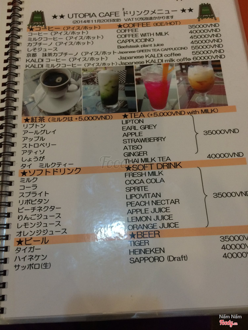 7.0Utopia CafeTình cờ đọc được bài giới thiệu quán này trên mạng nên tìm đến thử. Cảm giác đầu tiên là hơi thất vọng. Quán nhỏ, không đẹp lắm, truyện tranh cũng không nhiều. Menu món mặn so với 1 quán cafe thì khá là phong phú. Các loại nước uống thì hơi đơn điệu. Quán chủ yếu phục vụ khách trung niên Nhật. Lúc mình đến thì không thấy khách Việt. Món bánh trà xanh ăn tàm tạm, không ngon không dở. Bánh mì sandwich nướng thì ăn được. Phần korokke không ngon lắm. Nói chung có lẽ ở đây thích hợp cho người Nhật đọc manga giải trí hơn. ...Xem thêm