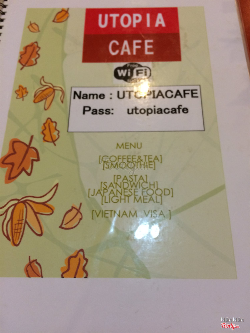8.6Giá bình dân, rất hợp lýGhiền cafe. thích la cà quán xá. Nhưng dạo này các quán cafe mới mở ra rất nhiều nên rất khó chọn quán phù hợp với mình. Đối với mình quán utopia cafe tuy có không gian nhỏ nhưng được thiết kế khá tỉ mỉ rất bắt mắt khách tới và làm cho mình có hứng thú hơn khi bước vào quán vì ở đây có Menu phong phú đa dạng với nhiều loại nước được pha chế khác nhau. Nhân viên phục vụ nhiệt tình và chu đáo làm cho mình càng yên tâm hơn khi bước tới đây để cafe cùng nhóm bạn. ...Xem thêm