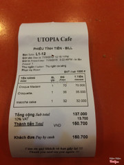 7.0Utopia CafeMuốn đi uống nước trò chuyện mà không nghĩ ra nơi nào, thế là bạn mình rủ đến Utopia, 1 quán cafe phong cách Nhật, chủ là người Nhật. Tuy nhiên không giống với hình dung của mình, Utopia giống 1 quán bình dân chứ không phải kiểu được chăm chút phần decor. Chỗ này thích hợp để đi 1 mình, ngồi tự kỷ hoặc đọc truyện hơn là uống nước tâm tình. Thức ăn lên khá nhanh nhưng không có gì đặc biệt hết. Giữ xe miễn phí. ...Xem thêm