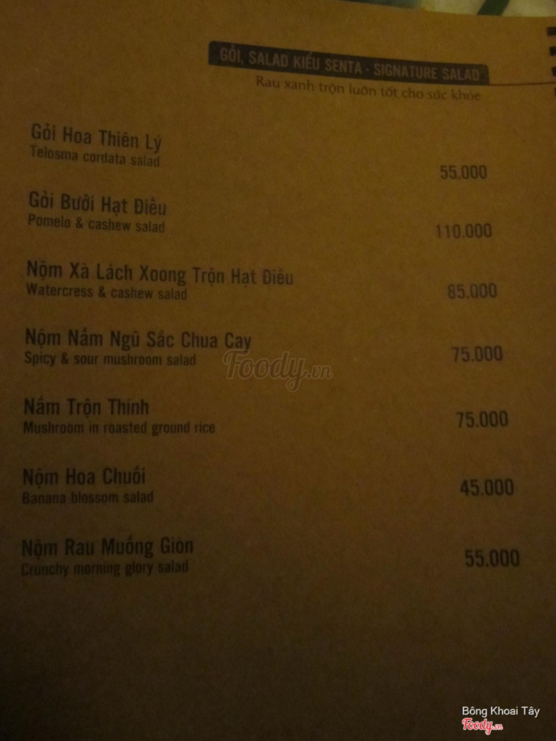 9.0Ăn chay ngon tại trung tâm thành phốĐây là lần thứ hai đến đây ăn, Lần trước là ăn lẩu nấm senta thấy ngon nên quay lại đây ăn. Lần này chúng tôi gọi salad Senta, miến áp chảo và món cà ri vàng. Tôi thấy món nào cũng ngon nhưng salad thì hơi bị nhiều giấm. Menu các món ăn ở đây khá là đa dạng, đặc biệt là có món gỏi hoa thiên lý và yaourt cơm rượu 😍 không gian bao gồm tầng trệt và tầng lầu, ngồi ở đâu cũng được. Địa điểm thì ngay trung tâm thành phố nên rất tiện và dễ tìm. Vì mặt bằng ngay trung tâm nên giá tất nhiên sẽ cao hơn những chỗ khác một tí 😋 phục vụ thì cũng bình thường, lâu lâu các chị lại châm trà uống. Nói chung là một địa điểm tốt để ăn chay tại trung tâm thành phố mà không phải đi xa ...Xem thêm