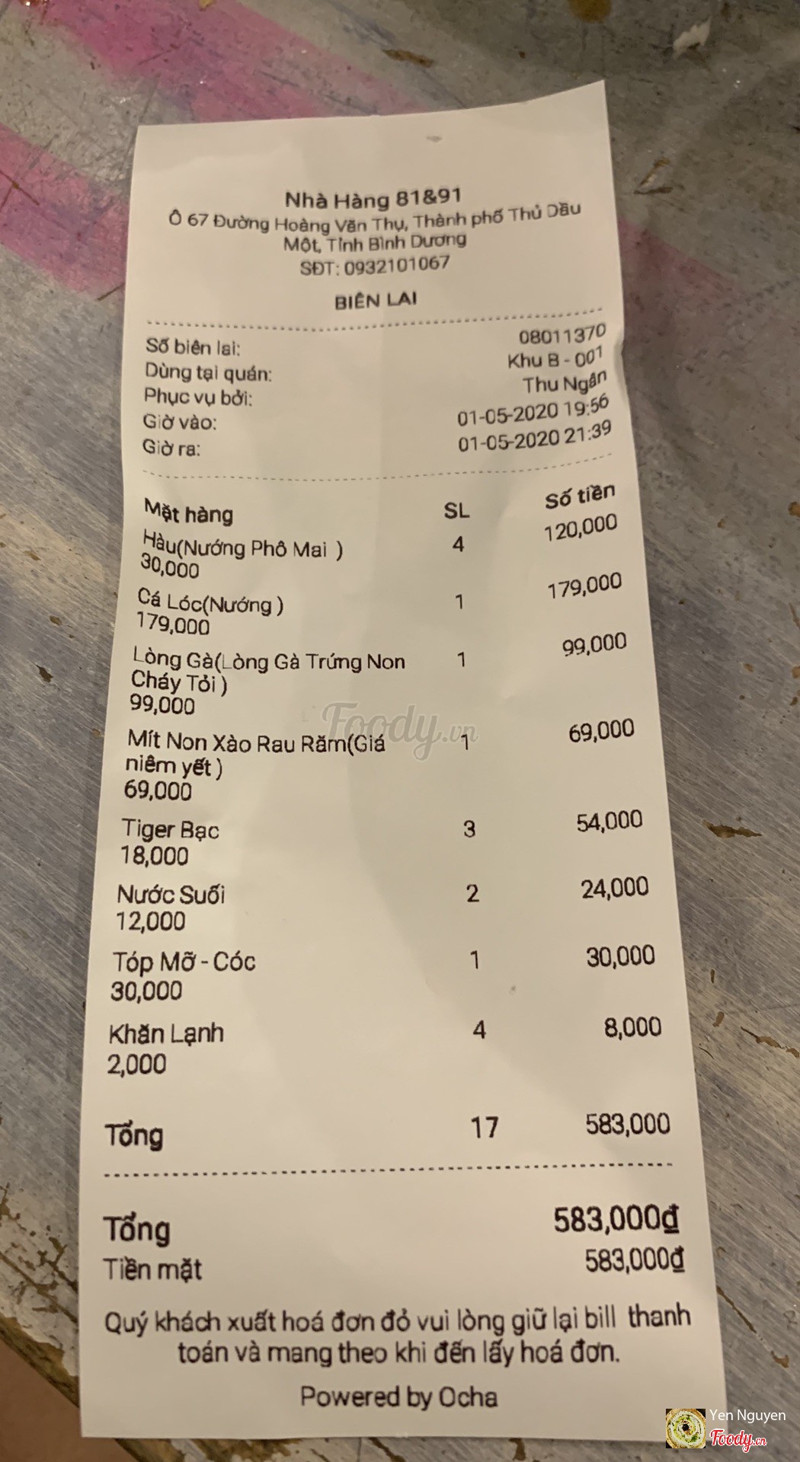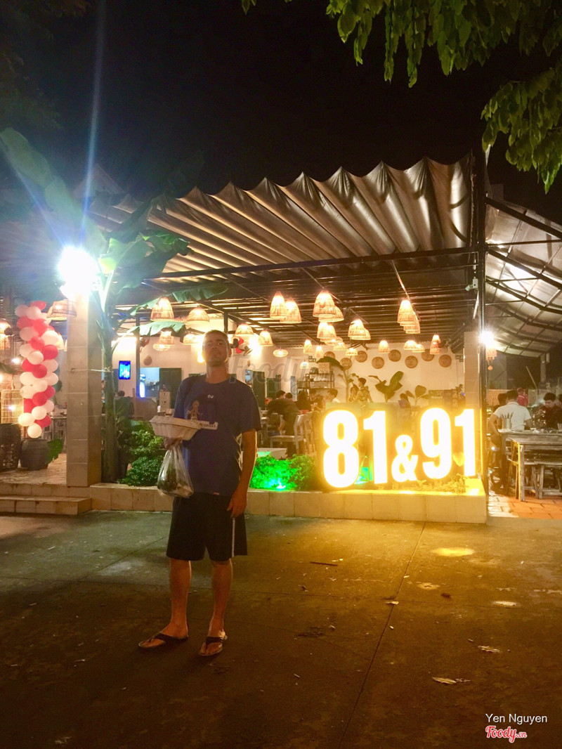 8.2Quay về quá khứ với 81 &91Quán đầu tư đúng chất xưa cũ, đũa tre, lon migo, chén sành dĩa sành, bàn ghế gỗ, không gian quê xưa với chuối đèn lồng bằng rọ cá, lồng chim. Quán rất chịu khó trang trí thay đổi theo từng sự kiện. Thức ăn ngon lạ, dân dã, độc đáo, đơn giản nhưng khác biệt, muốn tìm ăn nơi khác rất khó, chỉ riêng thức ăn đã khiến thực khách muốn quay lại vài lần. Phục vụ dễ thương, anh chủ dễ thương ( nghe anh mắng yêu phục vụ mà buồn cười, chắc chỉ quán này mới thấy phục vụ ghẹo chủ ...), bác giữ xe cũng dễ thương. Cuối tuần, lễ đông cực kỳ, nên đặt bàn trc khi tới. Mình tới 1 lần vào ngày lễ phải quay xe chạy lòng vòng nửa tiếng mới có chỗ. ...Xem thêm