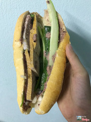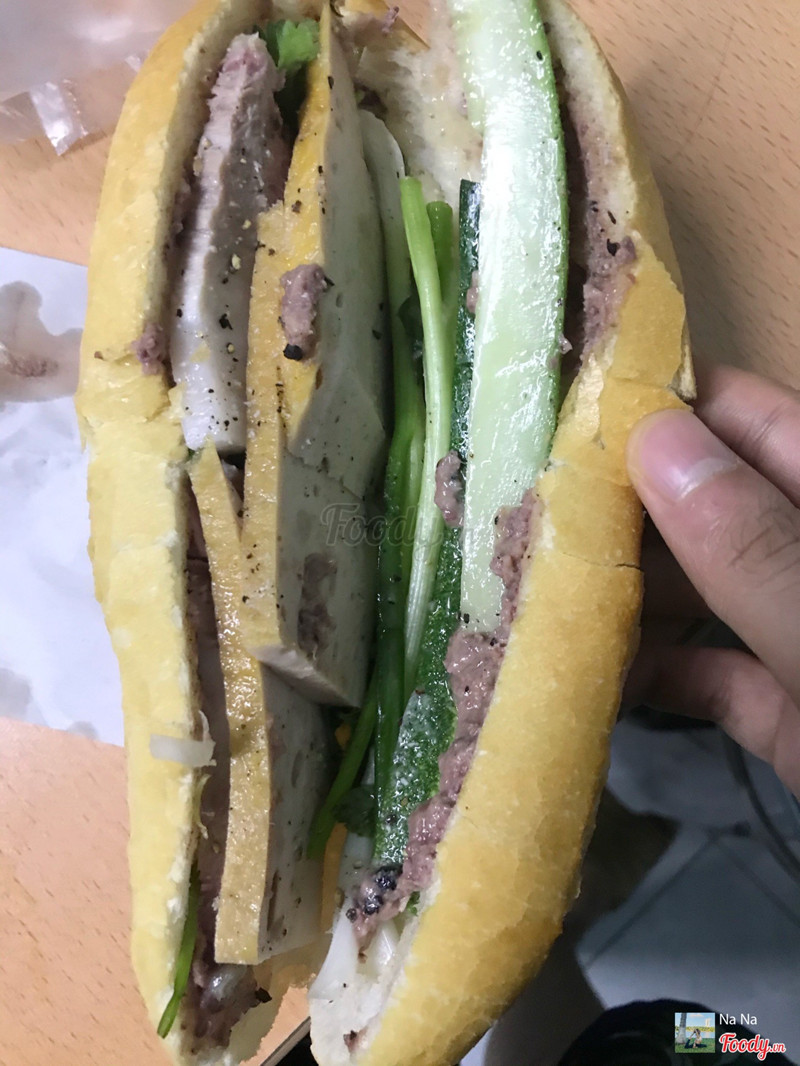 Bánh mỳ bà Lan thì quá nổi tiếng rồi. Ship đến còn nóng hổi, giòn rụm. Nhân đầy ụ nào chả, nào pate, rau thì chỉ có dưa leo và hành thôi. Cho cả ớt xanh nhưng không cay lắm, chỉ the the thôi. Có nghe chút vị mặn mặn thơm của muối tiêu nè. Chả thì siêu ngon, thơm cực. Pate cũng bùi bùi béo, dậy mùi phết. Vị vừa miệng lắm, mùi đặc trưng làm nên thương hiệu cho quán. Ăn ổ 20k mà no căng, ổ mỳ cũng to nữa. Chiều đói làm ổ nhức nách luôn. ...Xem thêm