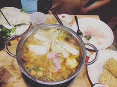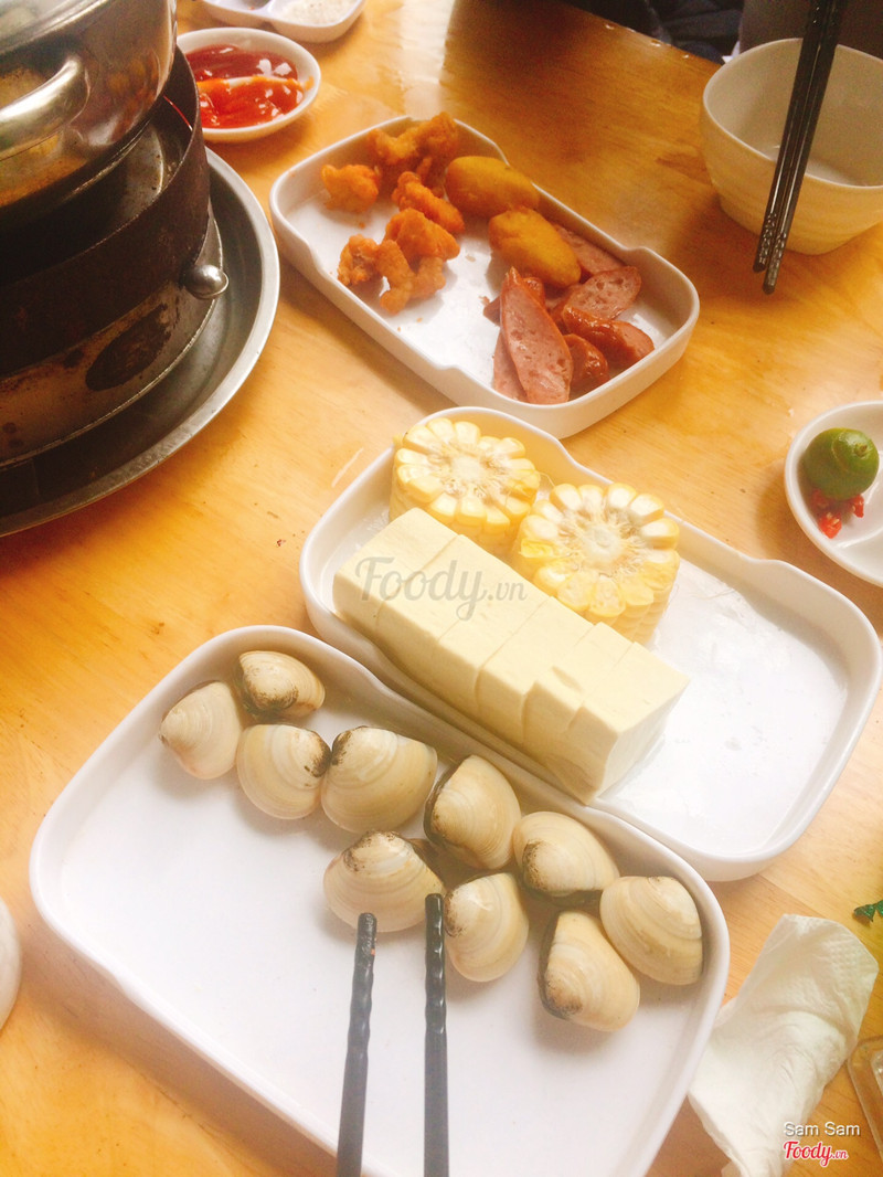 - Sử dụng bếp cồn + điều hoà > Cực kỳ lâu sôi, đợi tới lần thêm cồn lần 1 mới bắt đầu có dấu hiệu sôi - Đồ ăn không để lại ấn tượng về vị ngon (trừ món nem) - Nước lẩu không để lại ấn tượng gì về vị. Gọi lẩu kim chi mà thấy dùng chung 1 âu nước lẩu với các bàn khác, chắc khác mỗi là có thêm kim chi. Kim chi trong lẩu cũng không ngon. - Đồ chấm không có gì đặc sắc, chỉ có muối chanh, sa tế, tương ớt, tương cà - Bạch tuộc bé và dai như cao su - Rau không có kèm nấm kim. Nếu gọi nấm là gọi thêm, tính tiền thêm 30k - Ra về sớm với cảm giác ngấy chứ không no ...Xem thêm