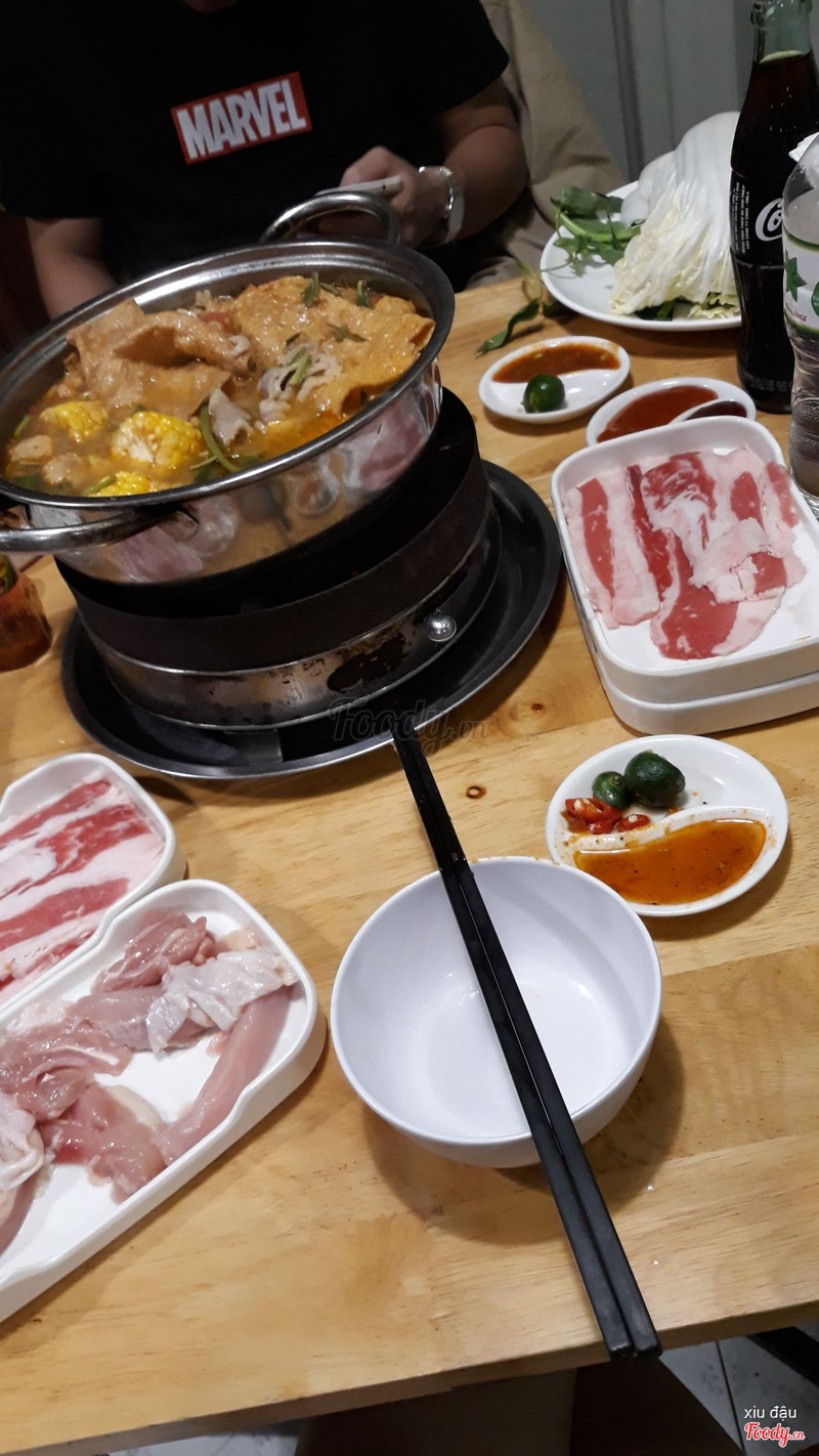 Đợt này rộ lên nhiều quán buffet lẩu giá rẻ quá, toàn chỉ 100k hoặc trên 100k chút xíu thôi. Hóng hớt được chỗ này buffet chỉ 120k nên đi thử xem, thấy trên menu đồ nhúng ngoài bò Mỹ có thêm viên chiên ăn giống kiểu chả cá ấy, thịt gà với cả đồ ăn vặt cũng nhiều nữa như lạp xưởng, gà lắc phô mai. Không được như kì vọng, nước lẩu Thái nhạt nhẽo, đồ ăn vặt chán, được mỗi cái nước ở đây rẻ hơn tầm 15k thôi chứ không phải 20k, không quay lại đâu ...Xem thêm