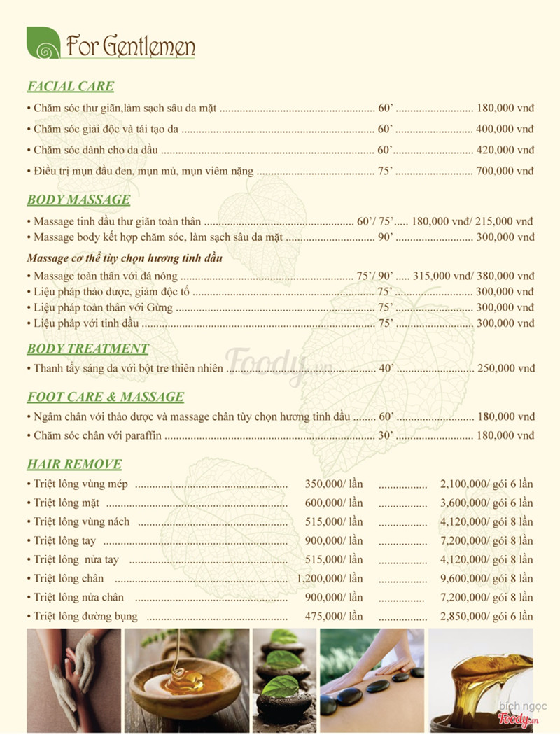 Lá Spa nằm trên đường lê văn thọ có ngõ hẻm nhỏ quẹo vào, lần đầu mình đi cũng hơi ngại tại thấy spa trong hẻm chắc làm cũng thường thôi, nhưng khi chạy xe vào thì nơi đó rộng rãi lắm, nơi để xe thoải mái, nhân viên dễ thương lắm, phục vụ chu đáo đặc biệt là không nhận tip nha. Lá spa thường có khuyến mãi mỗi tháng ak, ưu đãi cho khách hàng thân thiết......Về giá thì sao ta????? Nếu là 1 spa ở trung tâm thì giá này cũng bình thường thôi nhưng nếu ở Gò Vấp thì giá này hơi cao...... Dù bạn là nam hay nữ cũng đừng ngại mà hãy thư giãn nhé.....hjhjhj ...Xem thêm