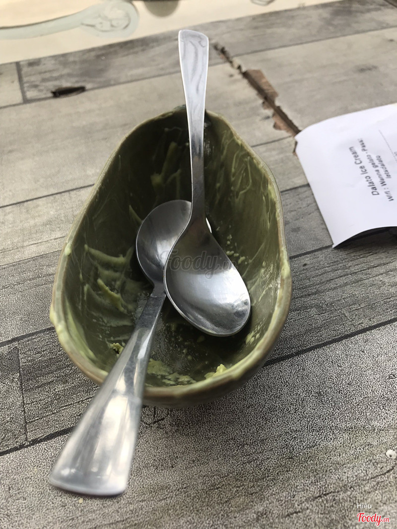 7.6Dalato Ice CreamCảm giác kì diệu khi biết đến quán 😂 😂 Do ở khách sạn gần đây, đi dạo vô tình nên vào luôn. Chứ bình thường ko thấy trên fb quảng cáo, hay review gì nhiều. Bên dưới là một nhà may ( như hình mình chụp) Khách chủ yếu sẽ lên lầu. View xinh, ấm cúng, nhân viên nhiệt tình, dễ thương. Mình order kem bơ, cũng xinh. Bạn mình chọn sữa ngủ cốc, mình từng giảm cân bằng sữa ngủ cốc nên giờ ngửi mùi lại thì ám ảnh luôn 😥 Có bánh tráng nữa nha, dạng đóng gói sẵn như bánh tráng cuốn bơ chứ ko phải bánh tráng trộn nha. nhân viên đem chén dĩa đầy đủ để ăn bánh tráng, lịch sự nè. Về Xì Gòn rồi like page quán, thấy up kem đen gì đó làm ham hố lại thèm Đà Lạt 😭 ...Xem thêm