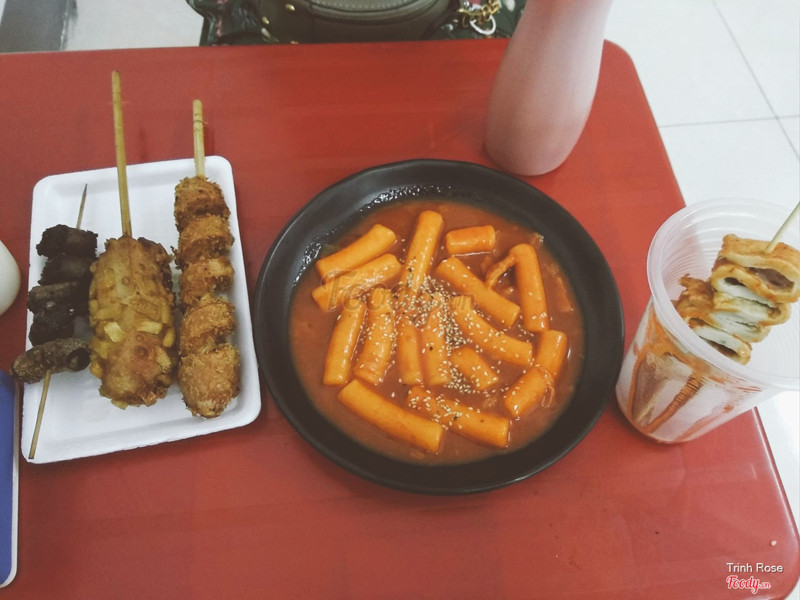 8.6Chang Food - Ăn Vặt Hàn QuốcĐến đây ăn được 3 lần đều ưng cả 3. Ở đây nấu ăn ngoài trời luôn, khách gọi món xong vào ngồi ở bàn nên đồ ăn luôn nóng hổi. Thú vị nhất là quán luôn làm sẵn chảo tobboki luôn sôi sùng sục. Khách mà đặt tobboki thì họ sẽ lấy cho 1 đĩa đưa vào ăn nóng ngay. Mà thú thực đến quán đập ngay vào mắt là chảo tobboki to đầy ú ụ. Ai mà chả thích mắt phải gọi ngay 1 đĩa. Bánh mềm, sốt sệt sệt vừa, ăn rất thích. Nhưng chắc vì nấu số lượng lớn nên phải nhạt nhạt để hợp vị đa số mn. Với mình thì hơi nhạt. Nhưng chả biết thêm gì vào cho đậm vị hơn. Xiên nướng ở đây thì đa dạng và nhiều loại lắm. Lần nào đến mình cũng cứ lấy mỗi loại 1 cái. Tính mình thích ăn nhiều loại từng tí từng tí một, chứ k phải thích cái gì là chỉ ăn mỗi loại đó. Bên mình gọi chả cá , xiên hot dog (xúc xích bọc khoai tây), xiên xúc xích xoắn...và nhiều loại mà chả nhớ nổi nữa. Chỉ nhớ là ăn xong là ngồi xoa bụng hối hận nước mắt lưng tròng...😂 Ở đây có cả mì trộn, nước ngọt, nước gạo ăn kèm cho đỡ ngấy, vì menu quán chủ yếu là đồ chiên mà À quán còn phục vụ kèm theo cho mỗi người một cốc be bé canh rong biển, có hôm thì dưa chua nữa. Nên là ăn tẹt ko sợ ngấy nhé mọi người. Chỉ sợ bao tử bé ăn được vài món là đầu hàng thôi . ...Xem thêm