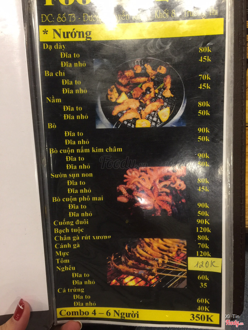 7.4Food In Love - Lẩu & NướngNgay gần nhà bạn mình, quán lẩu nướng mới khai trương trong tháng này. Điểm trừ là hơi xa, khó tìm vs cả chỗ để xe cũng hạn chế, vì nằm ngay ngã 3, đông xe cộ qua lại. Còn lại đồ ăn ok, mặc dù là mới mở nhưng đc cái gia vị ướp vừa miệng, đậm đà. Ngoài nướng bt ra thì mình thấy menu còn có lẩu ếch. Đi đông mà ord 1 nồi này rồi nhúng rau các thứ lai rai cũng hợp lý đó ...Xem thêm