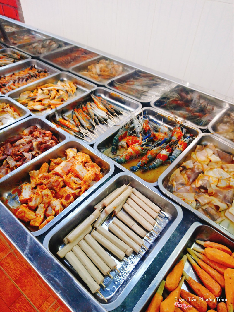 8.0Buffet 109Nay thèm buffet nên ghé quán này ăn tiếp nè. Quán nằm hơi xa trung tâm thành phố 1 chút, nằm trên Nguyễn Văn Cừ nối dài á, gần bệnh viện Nhi Đồng. Phục vụ cũng ok lắm nhe, vừa ngồi xuống là có than liền luôn. Đồ nướng thì đa dạng lắm, có các loại thịt và hải sản như tôm, ba chỉ bò, bạch tuột, mực, đùi ếch, cánh gà, xúc xích,... tất cả đều được ướp sốt sẵn, nướng lên rất thơm, nước chấm cũng có nhiều loại cho khách có thể lựa chọn. Ngoài ra, còn có đồ ăn được chế biến sẵn nữa, mình thích nhất là món bắp xào, bắp ngọt, thơm vị bơ, có vị mặn mặn của tôm khô nữa. ...Xem thêm