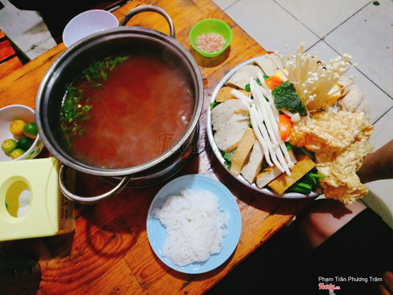 8.0Cơm Chay Đạt - Nguyễn Văn CừHôm qua trời mưa tự nhiên thèm ăn gì đó nóng nóng mà phải hợp túi tiền nữa nên mình có ghé ăn lẩu chay ở chỗ này :3 Cái lẩu sao không nhiều bằng lúc trước nữa, nhưng ăn vẫn no nóc nhe :3 một phần lẩu chỉ 50k mà nhìn hoành tráng lắm. Phần lẩu sẽ kèm theo dĩa bún nhỏ, còn bạn nào muốn ăn thêm mì thì phải mua thêm, ăn nhiêu tính nhiêu à. Mà mình thấy ăn vậy không đã quá no rồi. Bạn nào ăn 1 mình thì nên dẫn theo bạn bè nhe, ăn không hết đâu :)) nước lẩu hơi nhạt, cần nêm nếm cải thiện thêm :3 nước chấm gồm muối ớt, tương xay, và nước mắm, tùy khách lựa chọn ...Xem thêm