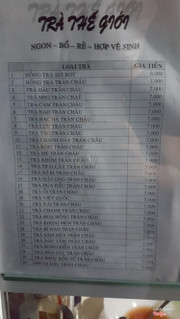 Có vẻ như món gì cũng ngon trừ cái trà xanh này ra thì phải, cái vị không thích lắm. Nên thôi cho qua đi vậy giá chỉ 10k...Đúng vậy 10k thôi được 1 ly trà sữa nhà nấu danh bất hư truyền của dì Dung rồi... Quá rẻ cho 1 ly tự nấu. Ngon nhất là trân châu, dai dai, giòn giòn sần sật, ăn rất đã luôn. Nghe đâu là tự làm bởi vậy nó không có hình tròn vo mà như là nguyên sợi rồi cắt ra ý, thôi miễn ngon là được rồi, không gian ổn, có mái che nắng che mưa, mà dì bán hay nghỉ sớm lắm nên chiều ra là phải chạy qua mới còn không là nhịn rồi :P Dì dung lại vui tính thoải mái nên không có gì chê rồi ...Xem thêm