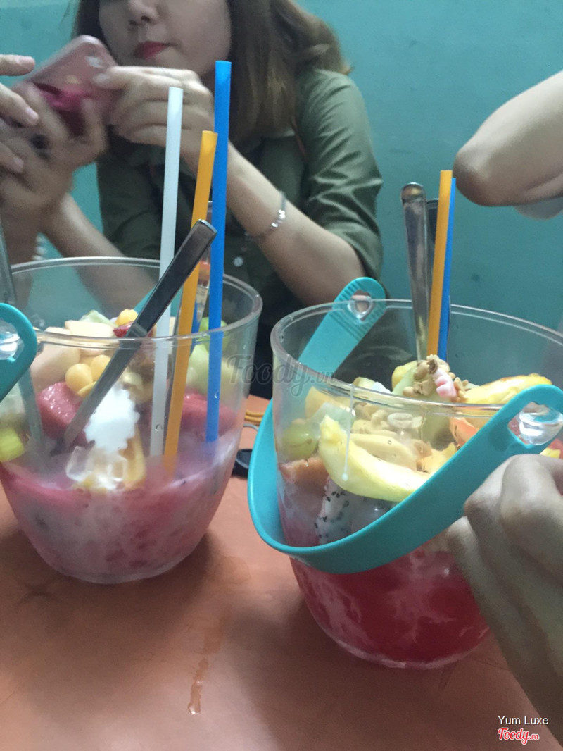 7.0Trái cây xôMón này mãi tới tận giờ vẫn có vẻ hot, trái cây thì có ăn mãi cũng dễ gì ngán á. Ghi điểm bởi hình thức lạ, đa số mấy bạn đến đây ăn đâu phải vì trái cây, mà vì cái xô đựng vừa đáng yêu vừa chất kia kìa :3 Nhưng vẫn phải công nhận trái cây thành phần của quán quá phong phú. Loại nào cũng rất tươi, ngon, ăn ngọt mát. Với phần chế biến trái cây, sữa, si rô, đá bào làm món này ngon lên hơn nhiều so với chỉ có trái cây thôi. Vừa đẹp da, vừa ăn vừa chém gió, vừa vui ai cũng sẽ mê thôi. ...Xem thêm