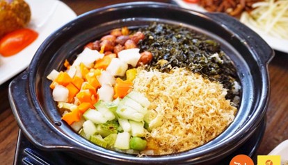 mình có gọi mấy món chay : rau củ luộc, canh rau biển & cơm cháy mình gọi vui là pizza chay