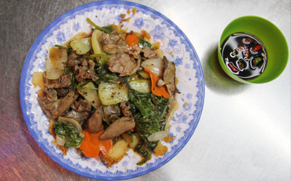 khoa kinhQuán này bán vỉa hè ngay ngã ba Phạm Hồng Thái và Nguyễn Chí Thanh. Cơm gà, cơm dương Châu ở đây ngon. Mì xíu khô tại đây cũng rất ngon thơm dầu mè. Mình thích ở đây nhất là các gia vị ăn kèm theo như chén nước xíu thịt( nước sệt hương vị đặc trưng không giống ở đâu cả), tóp mỡ,ớt hành chua...Nước dùng ...