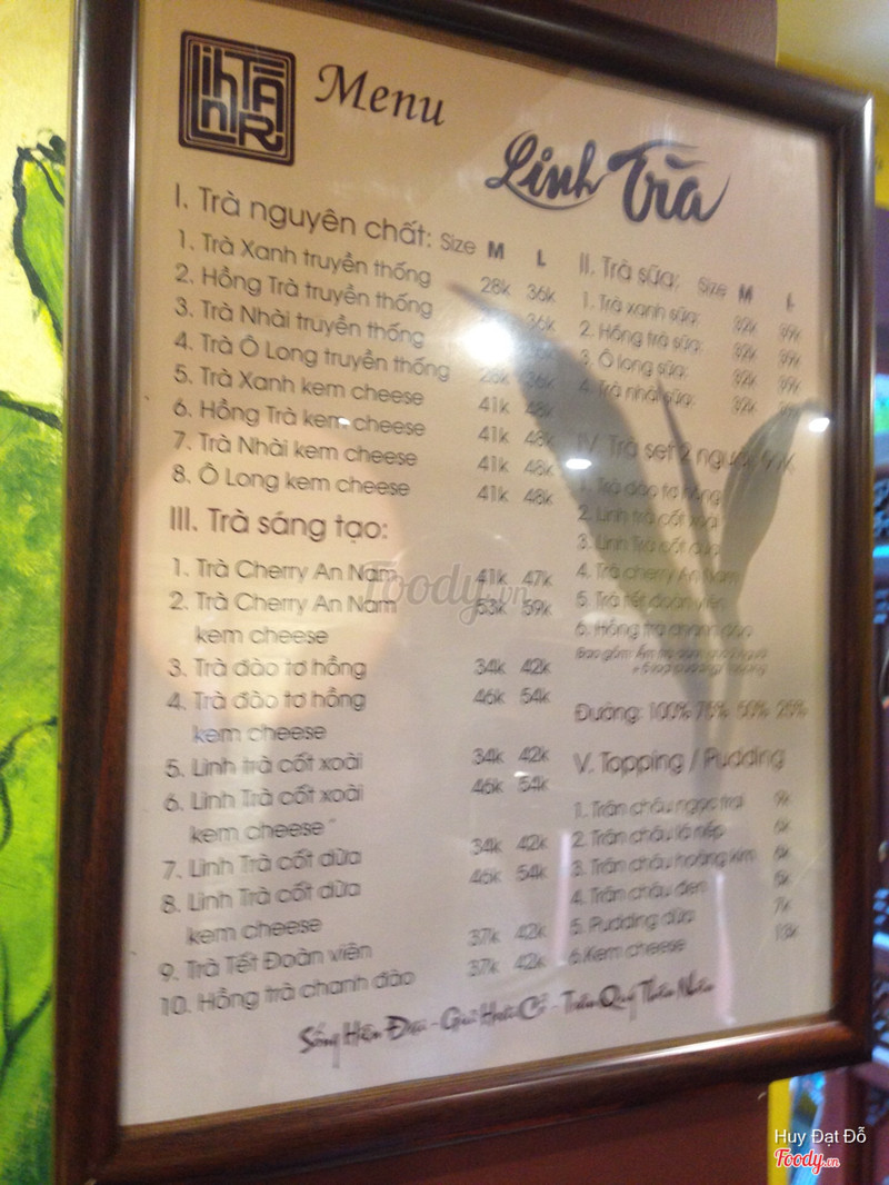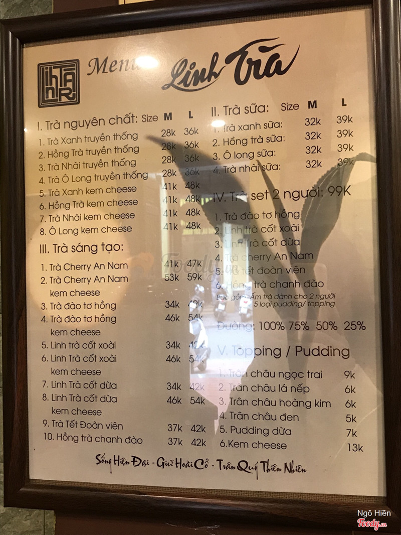 7.4Linh Trà Quán giao thoa quá khứ hiện tại1. Quán trà nhỏ bé nép mình trên phố Phó Đức Chính. Nếu bạn không chú ý rất có thể sẽ bỏ qua đó. Vì không gian bên ngoài không có gì nổi bật, chỉ đơn giản là một căn nhà với tiểu cảnh ở ngoài. Không gian bên trong củng khá nhỏ, tuy có 2 gian nhà nhưng 1 gian cho thu ngân và WC, chỉ có 1 gian là ngồi được. Có 1 đoạn nhỏ nối 2 gian nhưng quán không tận dụng kê bàn vào đó, chắc là sợ lối đi bị hẹp. 2. Nhân viên ở đây đều là nam, phục vụ nhanh nhẹn, tận tình. 3. Một điều mình không thích ở đây là cách bố trí WC. Nó ở ngay cạnh thu ngân, trước đó có 1 cái bàn mà các bạn nam nhân viên rất hay ngồi. Muốn đi vào ƯC phải qua thu ngân và các bạn nhân viên, vén rèm đi vào. Nên mình thấy khá ngại và không được thoải mái lắm 😂 4. Mình gọi Linh trà cốt xoài 99k. Đây là set trà cho 2 người rất nổi tiếng ở quán và mình đã thấy nhiều người khen. 1 set này có 1 ấm trà và 5 loại topping. Khi uống thì bạn rót trà ra cốc rồi dùng thìa lấy thêm topping mình thích. Trà mình uống thấy hơi nhạt, cũng không thơm mùi xoài lắm dù có thả xoài xắt miếng vào bên trong. Một bình này thấy đủ cho 2 người, không bị ít quá. Topping có 4 loại trân châu: đen, trắng, xanh, vàng nói chung mình ăn không thấy khác nhau. Độ dai vừa đủ, nhai sần sật nhưng vị hơi nhạt. Topping còn lại là thạch dừa nhưng mình không thích lắm. Nhìn chung thì mình nghĩ không gian này hợp để đi 1 mình hay với 1 người bạn cũ. Xung quanh yên tĩnh, có bật nhạc xưa nên không phù hợp cho ai thích ồn ào. Về đồ uống mình không ấn tượng lắm dù giá cũng chả thua kém các hàng trà sữa đắt đỏ hiện nay. ...Xem thêm