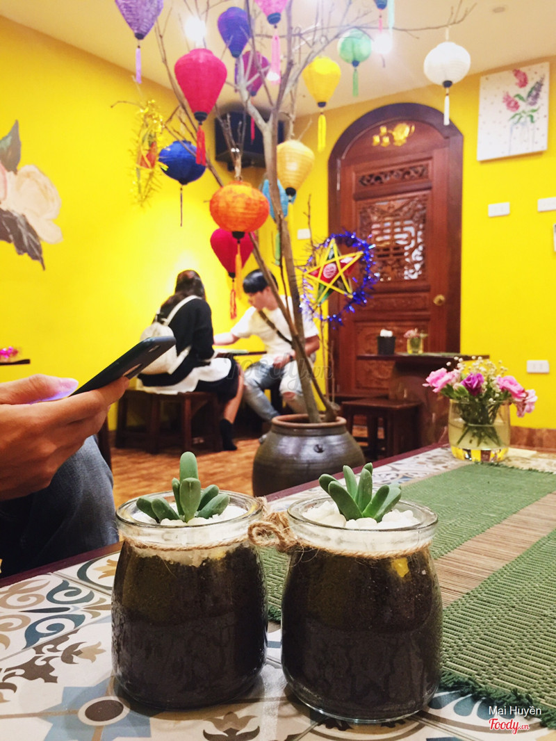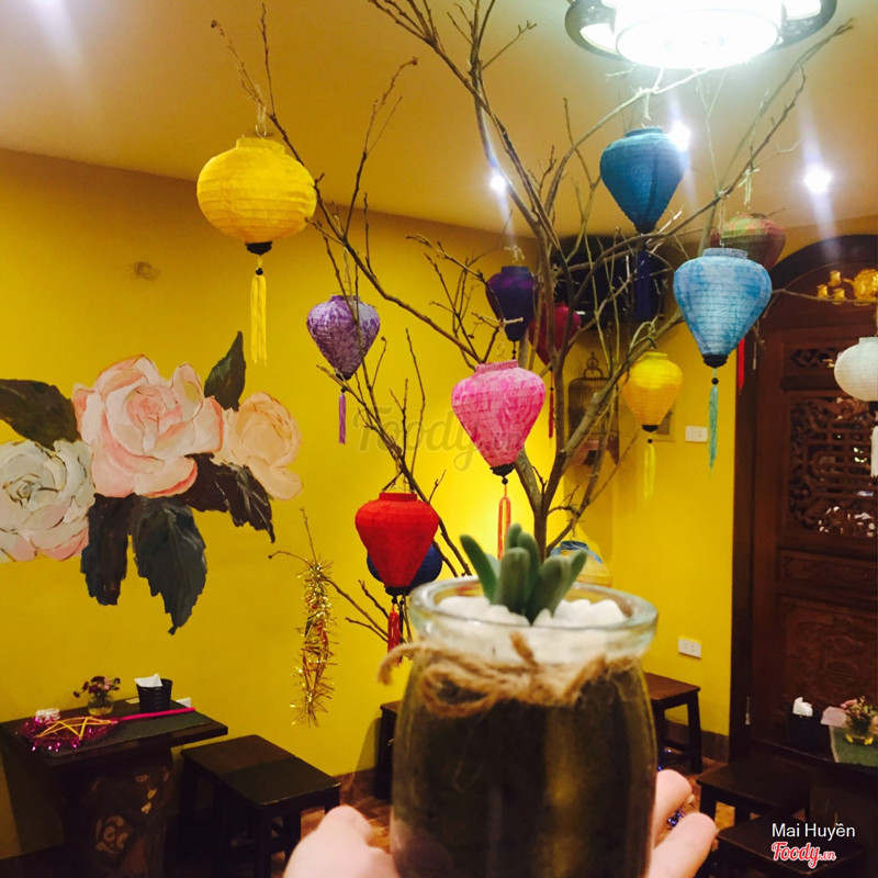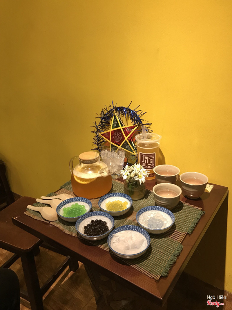 7.6Linh Trà QuánLinh Trà quán nhỏ xinh, nằm nép mình trong khu phố ồn ào, tông màu chủ đạo của quán là màu vàng với những đồ gỗ "xưa cũ" khiến cho người ta cảm thấy như bước vào một Hội An thu nhỏ trong lòng Hà Nội. Linh trà quán như kiểu không cần quảng cáo nhiều mà cứ để tự khách hàng tìm đến, mình tìm fb của quán không có, instagram thì khá ít thông tin, mình muốn tìm số đth để hỏi xem còn bàn không cũng không thấy luôn 😱 Quán khá nhỏ, chỉ có khoảng 6,7 bàn thôi cùng trong một gian nhà nên nếu đông khách là sẽ khá ồn đó. Đồ uống đang hot nhất là set trà dành cho 2 người với 05 loại topping, giá 99k. Bình trà siêu to, topping có 3 loại trân châu, 1 đĩa nhỏ hoa quả và 1 đĩa nhỏ thạch dừa. Mình chọn trà cherry An Nam uống vị thanh, mát, chua dịu dễ uống, trong trà còn quả chery cắt nhỏ rất chất. Vì đang hot nên hầu như ai đến đây cũng gọi set trà này và đồ ra nhanh hơn. Bạn đi cùng mình gọi đồ uống không theo set phải đợi khá lâu. Giá đồ uống không theo set ở đây khá mềm, với 39k bạn đã có được một cốc trà xoài kem mặn, trà xoài thơm, ngọt vừa, uống rất mát, kem mặn quán cho nhiều, kem hơi đặc và mặn hơi những nơi khác một chút nhưng nhìn chung vị khá ổn. Nhóm mình có gọi hồng trà sữa và trà đào nữa, các vị trà của quán đều rất vừa miệng, không ngọt quá. ...Xem thêm