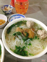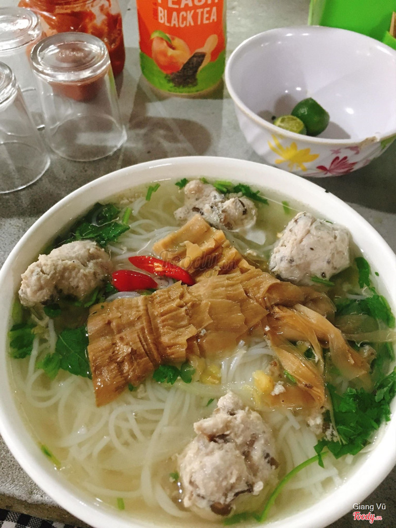 Bún mọc – ngõ Quang Trung, tp. Nam Định Sáng chớm đông đi ăn tô bún mọc mà ấm hết cả người! Tô bún đơn giản lắm, chỉ có mọc và măng khô (vì mình ăn ít nên bảo cô cho ít) tô bún như thế chỉ có 15k thôi, nước dùng ninh từ sương ngọt thanh, mọc có thịt xay và mộc nhĩ, thêm 1 chút chua chua của chanh và vị cay của ớt, thế là xong 1 bữa sáng ngon lành chất lượng mà giá cả lại siêu rẻ nữa! Quán khá sạch sẽ, rộng rãi. Cô bán hàng vui tính đáo để, còn ngồi buôn chuyện với bọn mình ))) ...Xem thêm