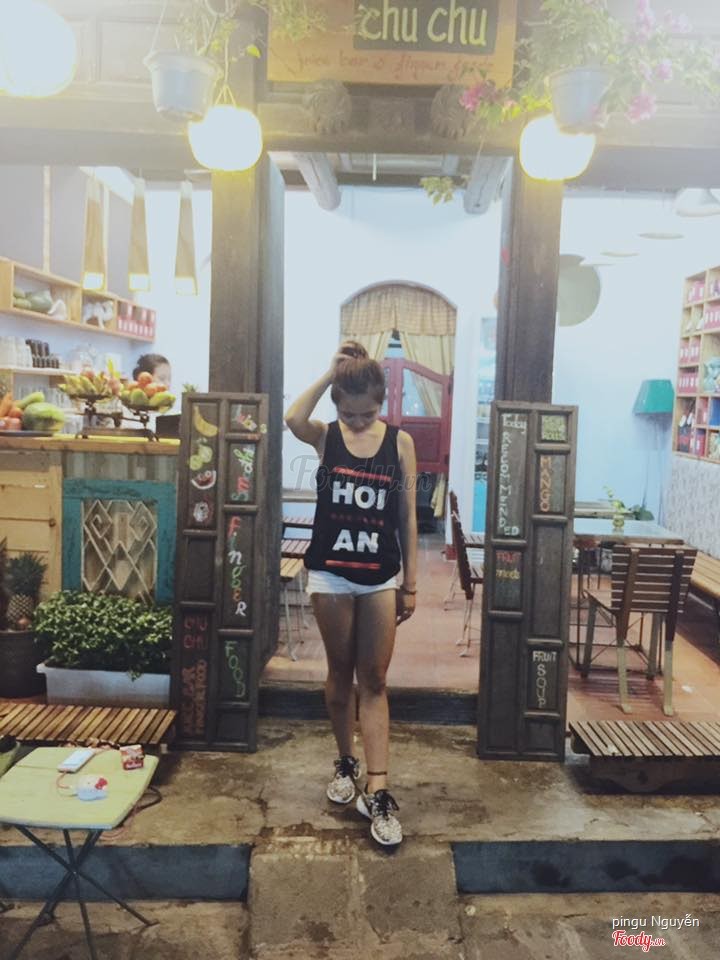 7.0Chu Chu - Juice Bar & Finger FoodsQuán nằm trên đường Trần Phú, đồ uống không rẻ cho lắm ạ. Nhưng decor khá xinh, ban ngày trông đẹp lắm, em tới lúc tầm chiều chiều rồi, trời còn mưa nữa, ở phố cổ ngồi các quán đi lúc ban ngày là đẹp nhất, chụp ảnh có nắng vẫn là xinh nhất í ...Xem thêm