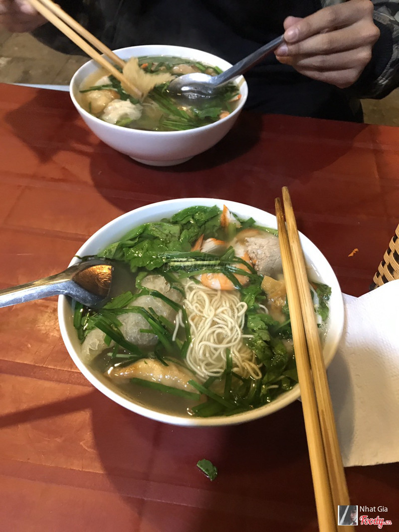 Mì vằn thắn có giá 40k/bát, quán nhỏ phía đầu Hàng Chiếu gần đường đê, rất đông khách và phải mở thêm một gian nhà bên đường để thêm chỗ cho khách ngồi. Mình không quá ấn tượng với mì ở đây, bát mì trông hơi lõng bõng và ít nguyên liệu. Được cái sủi cảo luộc ở đây ít hạt tiêu nên mình ăn không bị nóng lắm. Có cả quẩy nhưng mình nghĩ ăn sủi rán rồi thì thôi không nên ăn thì hơn :))) Quán đông nhân viên nhưng nhiều người mới nên phục vụ còn lóng ngóng. ...Xem thêm