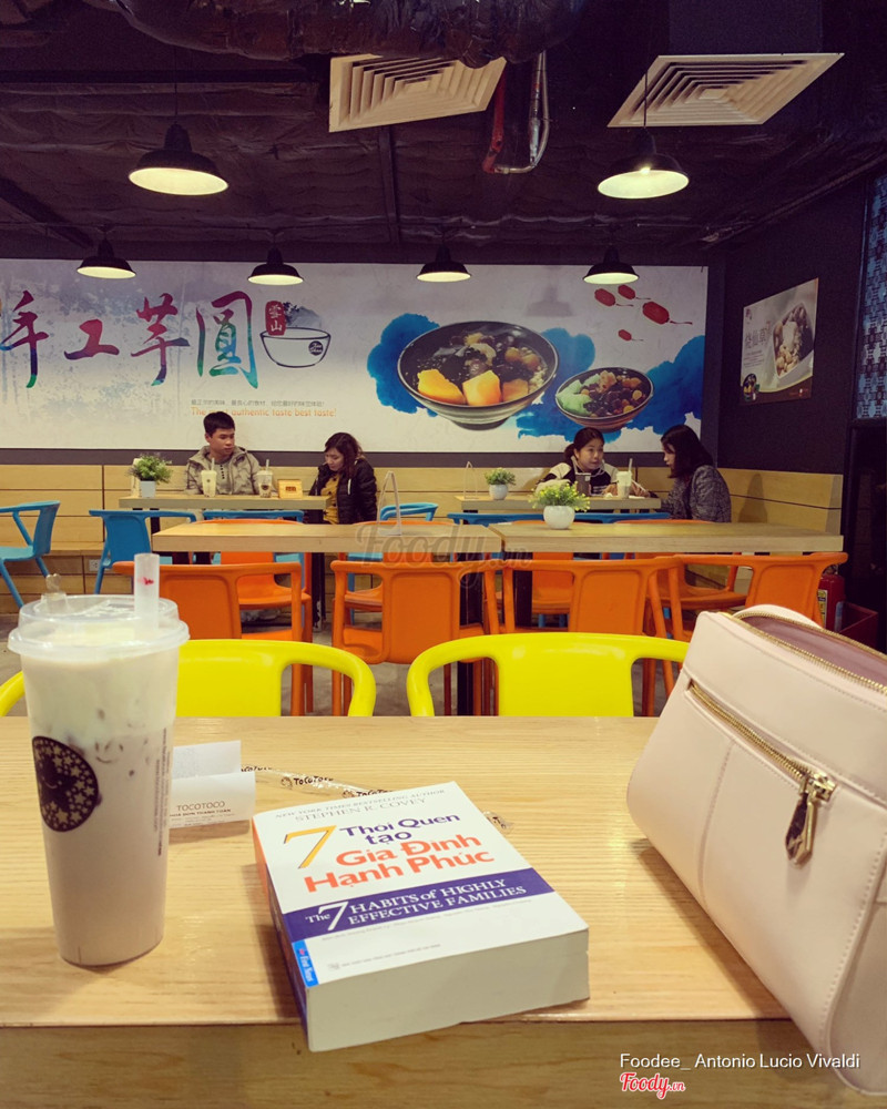 Hồi năm 2 năm 3 thì đây là một trong những nơi mình và hội chị em đại học ghé thăm nhiều nhất, vì gần vincom này. Mình thích mua bánh mì dài vinmart rồi qua toco uống trà sữa. Combo ngọt mặn thật hoàn hảo. Mình chỉ cần như vậy cho bữa trưa. Tocotoco trước nổi lắm, giờ đỡ hơn do bị bóc phốt vài nơi. Mình hay uống nhất ở đây là trà sữa ba anh em rồi Trà sữa trân châu hoàng gia chính là trân châu trắng bây giờ, rồi mình thích ăn chè khoai dẻo ở đây. Bát to mà ăn ngập mồm nhưng mình recommend nên ăn hai người chứ trước 1 mình mình ăn do quá thèm thì hơi quá đà nhé. Ở đây đặt tại vincom nên khá đông. ...View more