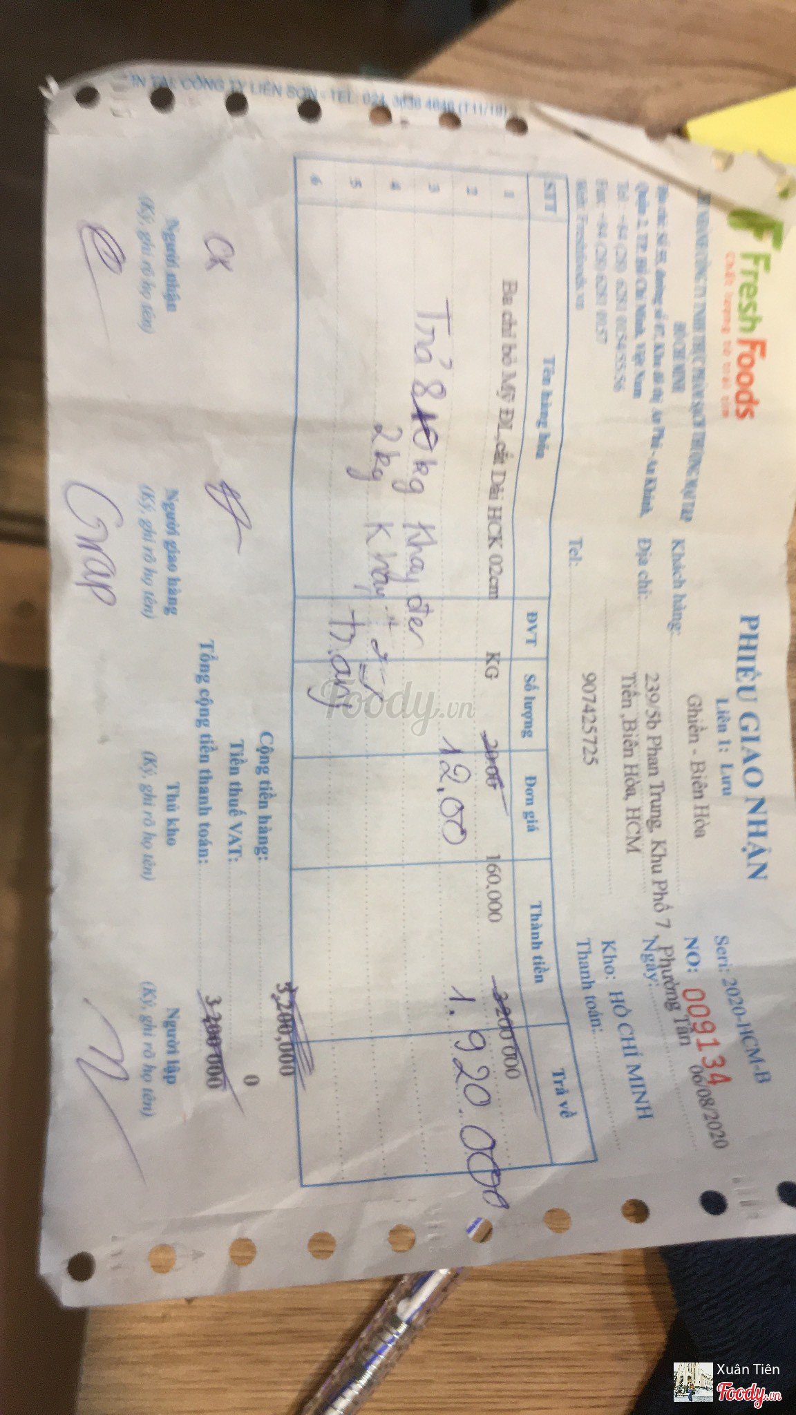 Ghi chú đặt bàn