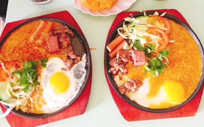 Có cả bánh mì chảo, có trứng, bò, sốt đậm đà, chất lượng, giá là 15k, siêu rẻ.