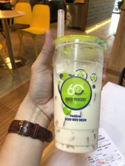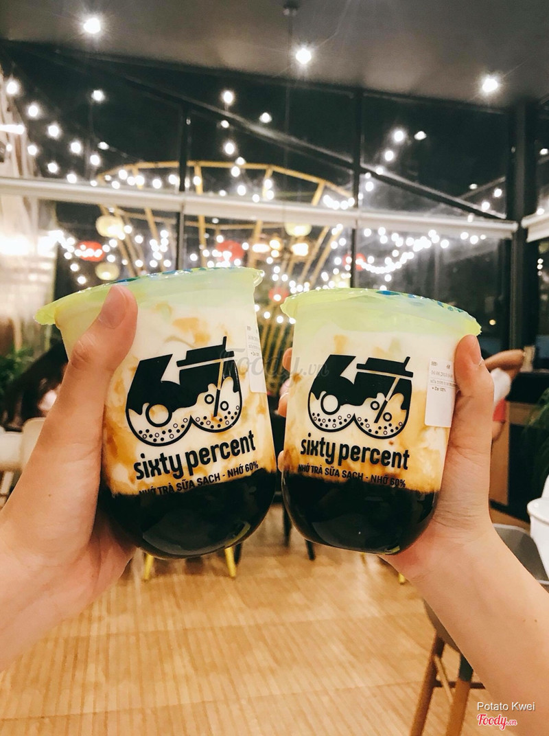 6.4Sixty Percent - Fresh Milk TeaMới đây mình có order quán này 2 món vì cái ly cũng ưng quá nè. gọi sữa tươi trân châu đường đen hàn quốc 42k là khá cao so với giá mặt bằng từ 30k các quán khác, nhưng thật sự trân châu đ1ung vị đường đen nha, cảm nhận rất rõ vị luôn, ngọt mà không hề gắt, còn sữa tươi thì không béo, hơi nhạt mặc dù mình dặn là không đá, chỉ thất trân châu đường đen best thôi. còn trà sữa oolong hoa hồng + macchiato: mặc dù dặn không đá, nhưng mình cũng biết là để giữ được lớp macchiato nên là phải bắt buộc bỏ ít đá, nói chung là không ngon, (bill 3h là shipper đã mua xong, 4h giao đến mà 5h mình mới bắt đầu uống) nên đá tan khá nhiều, vị loãng đi rất nhiều luôn, nhạt nhẽo lắm, nhưng vẫn cảm nhận được vị hoa hồng nhẹ, không thích lắm, nhưng lớp macchiato ngon nè, đá giữ được nên lớp macchiato khá dày, vị có béo, mặn nhẹ nên hơi ok luôn. có lẽ do phần nào về thời gian uống nên đá bị tan ra, ỷ y ko đá nên ko kiểm tra, nếu biết trước sẽ để vào tủ lạnh cho đỡ tan. nói chung là sẽ quay lại quán và đánh giá chính xác hơn. ...Xem thêm