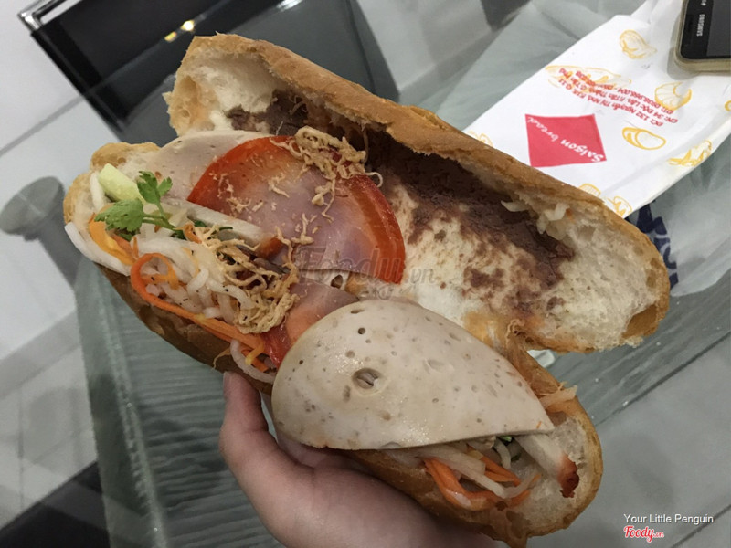 9.8Bánh mì ốp la ngon, rẻĐợt trước Ú có review về bánh mì thịt thập cẩm ở đây. Kỳ là là ổ bánh mì trứng ốp la của Saigon Bread nha. Bánh mì từ lò làm ra liên tục nên luôn nóng giòn và thơm bơ. Một ổ bánh ốp là có 2 trứng chỉ có giá 13-15k. Ổ bánh mì cầm lên rất nặng. Nào là 2 trứng, pate, bơ, đồ chua, dưa leo, hành ngò, ớt... Bánh mì vừa rẻ lại vừa ngon nên tối nào Ú cũng mua ủng hộ. Bị nghiện bánh mì hay sao ấy, ăn hoài không ngán các***ạ hihi. Ở đây luôn có nhân viên nhiệt tình. Mặc đồng phục áo đen và luôn lịch sự với khách. ...Xem thêm