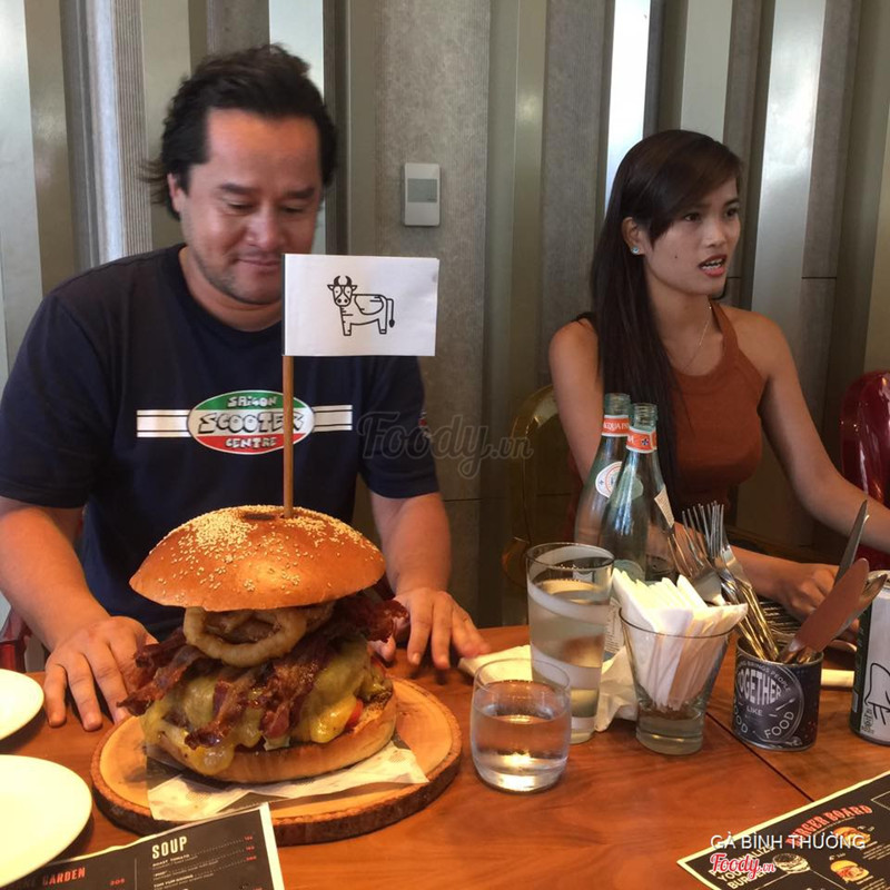Thật ra với không gian và chất lượng dịch vụ thì giá 999k/ burger thì không đắt, nhưng mình thấy chỉ khách Tây gọi món này thôi. To bằng cái mặt vậy đó, nhân đủ thứ, nhìn là no luôn, khỏi cần ăn. Theo mình nghĩ với "sức ăn" của người Việt mình thì 4 -5 người ăn cũng được. Nhìn cho biết thôi chứ không có nhu cầu )). nhìn xong muốn no rồi. ...Xem thêm