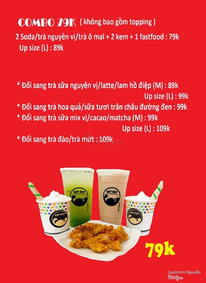 7.4The Fat Cat Tea- lâu lắm rồi mình cung chẳng uống ở đây, ấn tượng nhất chắc vẫn là trà xanh sữa. Tự nhiên nay lại thèm ts nên mò lên trang tìm thử , quán bh có menu mới rồi, có 1 vài món lạ như món mình order là trà lam hồ điệp -thực chất nó là trà hoa đậu biếc, phần bên dưới màu cam có 2 loại được lựa chọn là cam hoặc chanh thì mình chọn cam. Mình cho 50% đường , 30% đá. Vị của nó khá là nhạt, không để lại ấn tượng gì cho mình lắm.Chỉ được cái màu đẹp thật😂 Khoai tây chiên lắc phomai mà mình ăn như kiểu chưa lắc ấy🤔 - quán dạo này có 3 combo mới giá cũng khá rẻ, bắt đầu bán từ 28/4 từ cho học sinh sv mua đồ cho tiệnvs rẻ hơn . ...Xem thêm