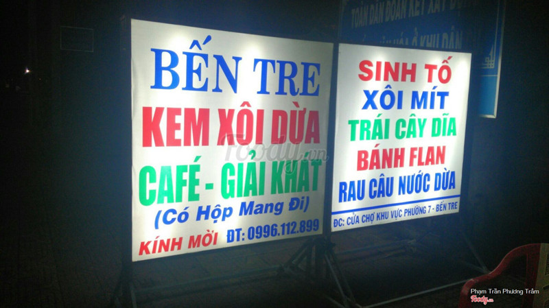 8.6Kem Xôi Dừa - Khu Sao MaiKem xôi dừa rất ngon, nổi tiếng ở Bến Tre. Nhìn rất hấp dẫn, mỗi phần kem xôi dừa được tặng kèm 1 ly nước dừa. Quán rộng rãi, thoáng mát, phục vụ nhanh. Giá: 15k/phan kem xôi dừa. ...Xem thêm